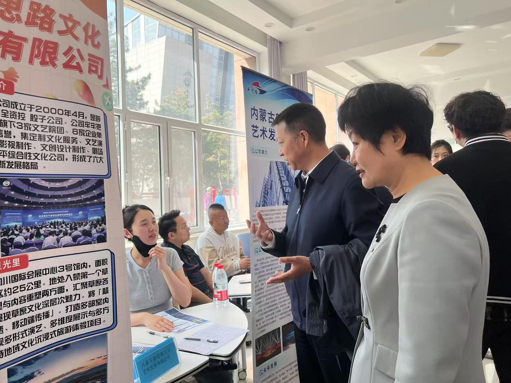 为深入贯彻落实教育部、教育厅关于高校毕业生就业工作决策部署,深化校企合作,促进2025届毕业生高质量就业,4月19日,学校联合呼和浩特市文化旅游投资集团在创业楼举办2025届毕业生专场招聘会。校党委委员、副校长双虎、呼市文旅投资集团党委书记、董事长高丽芳深入招聘会现场指导就业工作,并与用人单位代表深入交流。