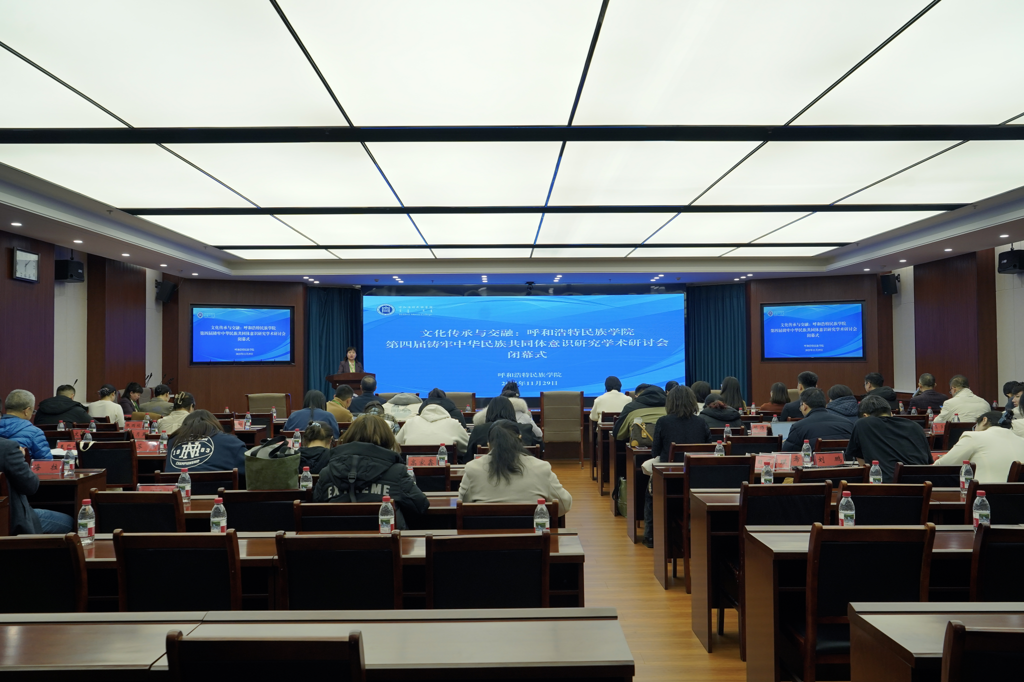 11月29日,由学校铸牢中华民族共同体意识研究基地、蒙古族非物质文化遗产研究基地、北疆文化传播实践中心联合举办的“文化传承与交融:呼和浩特民族学院第四届铸牢中华民族共同体意识研究学术研讨会”顺利召开。来自民族团结杂志社、中国传媒大学、云南大学、中央民族大学、北京外国语大学、青海大学、西北民族大学、西南民族大学、中南民族大学、青海民族大学、辽宁师范大学、塔里木理工大学以及区内各高校、科研机构的100余名专家学者齐聚一堂。内蒙古自治区党委宣传部理论处处长布和、内蒙古自治区民委理论研究处处长张玲玲等嘉宾应邀出席。校党委书记、铸牢中华民族共同体意识研究基地主任刘九万出席会议并致开幕辞。校党委副书记格根哈斯主持开幕式。