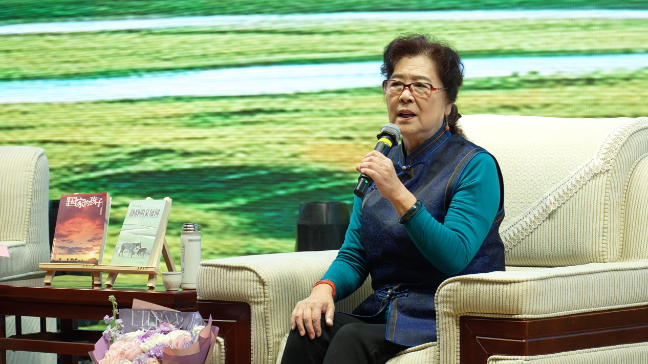 分享会上,萨仁托娅结合自身创作历程与草原生活积淀,深情讲述上世纪六十年代内蒙古草原母亲无私养育“国家的孩子”的感人故事。她通过“小细节”折射“大情怀”,从草原习俗中的“额吉”文化切入,还原母亲们以博大胸怀接纳南方孤儿、用奶食哺育成长的点滴,深刻诠释“民族团结一家亲”的精神内核。讲到动情处,她眼含泪光,台下师生亦深受感染,掌声数次响起。