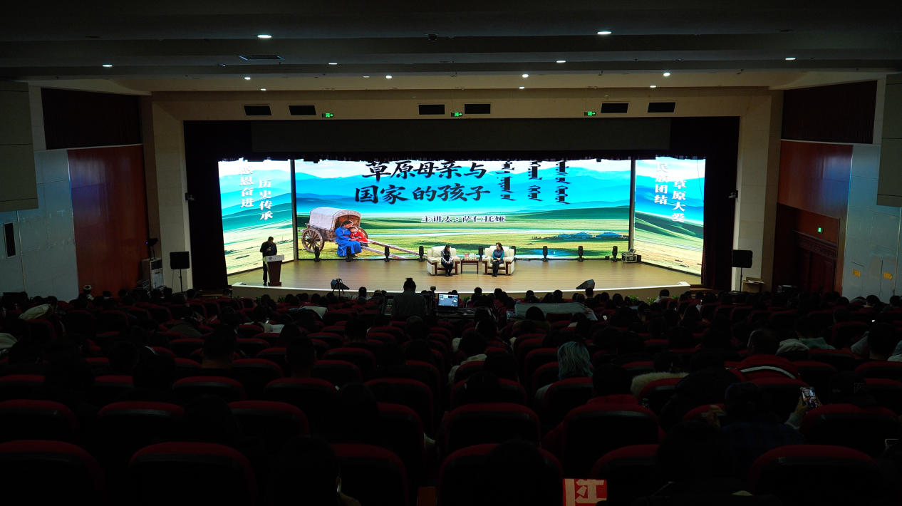 为深入贯彻党的二十届四中全会精神,铸牢中华民族共同体意识,深化校园文化建设,以文化人、以文育人,助力学生厚植家国情怀。11月28日下午,国家一级作家、原内蒙古电影家协会副主席萨仁托娅受邀走进我校,以“草原母亲与国家的孩子”为主题,开启“文润民院”之系列活动(三)读书分享会。校党委委员、宣传部部长张海峰向大家简要介绍了萨仁托娅。读书分享会环节由文学院教师王佳博士主持。全校师生代表、文学爱好者共600余人现场聆听,共同沉浸于跨越半个世纪的温暖叙事中。