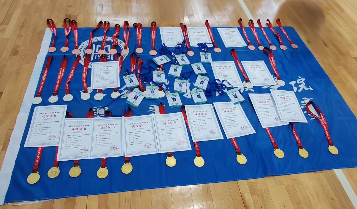 我校代表队14人参赛,在领队白图日根老师的统筹协调与教练员任诚恩的专业指导下,最终斩获6枚金牌、3枚银牌、4枚铜牌的佳绩。