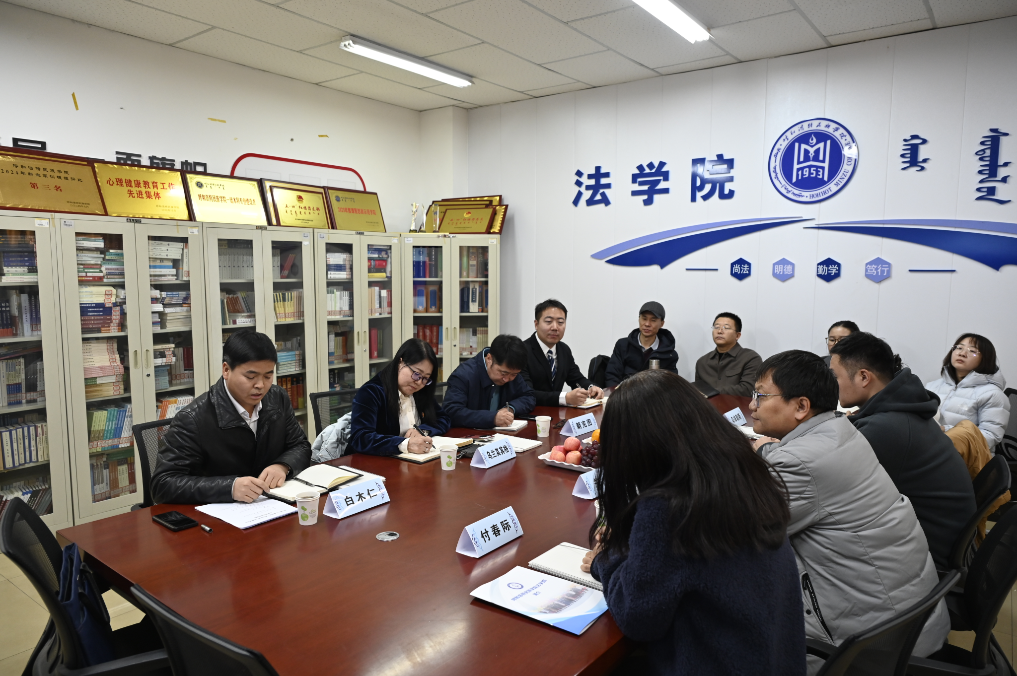 11月20日,法治文化节在都林楼一楼116模拟法庭正式拉开序幕。呼和浩特市法律援助中心主任付春际、新城区司法局局长关华等嘉宾与法学院全体教师及学生代表齐聚一堂,共同参加活动。活动现场,集体观看了反诈宣传片。活动现场,法学院负责人作了启动致辞,宣读实施方案,明确了模拟法庭、法律辩论赛、法治讲座等多项活动安排,并提出师生共同营造“学法、懂法、守法、用法”的良好氛围的倡议。启动仪式后,与会人员围绕校地协同育人、实践教学创新等议题开展专题研讨,凝聚育人共识。