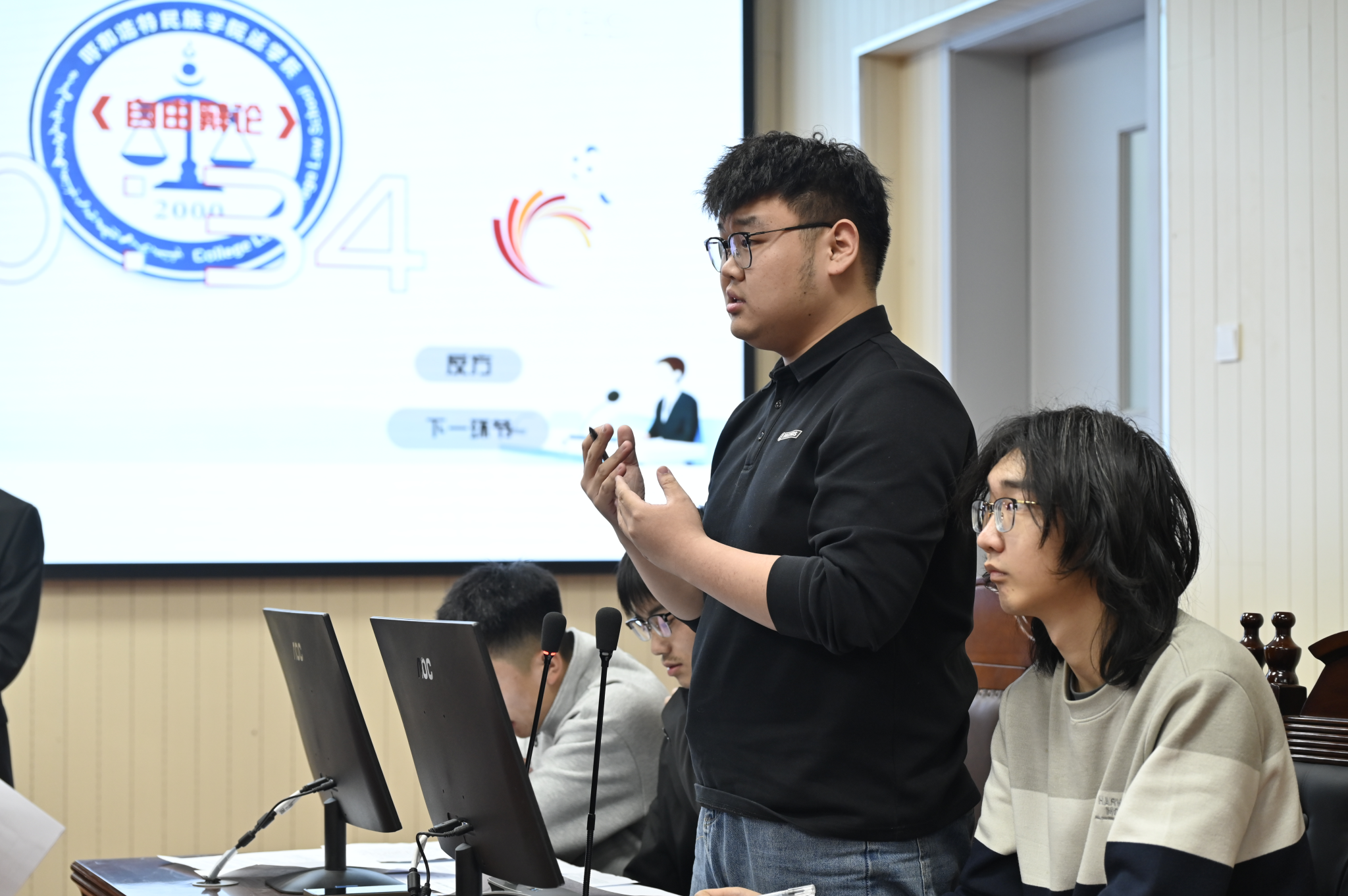 活动期间,举办了“崇法明德,思辨笃行”主题法律辩论赛决赛。经过角逐,23 级法学2班、25级法学1-3班四支队伍晋级决赛。比赛中,辩手们围绕热点法治议题,引经据典、层层剖析,在立论、质询、自由辩论等环节展现出扎实的专业功底与敏锐的思辨能力。