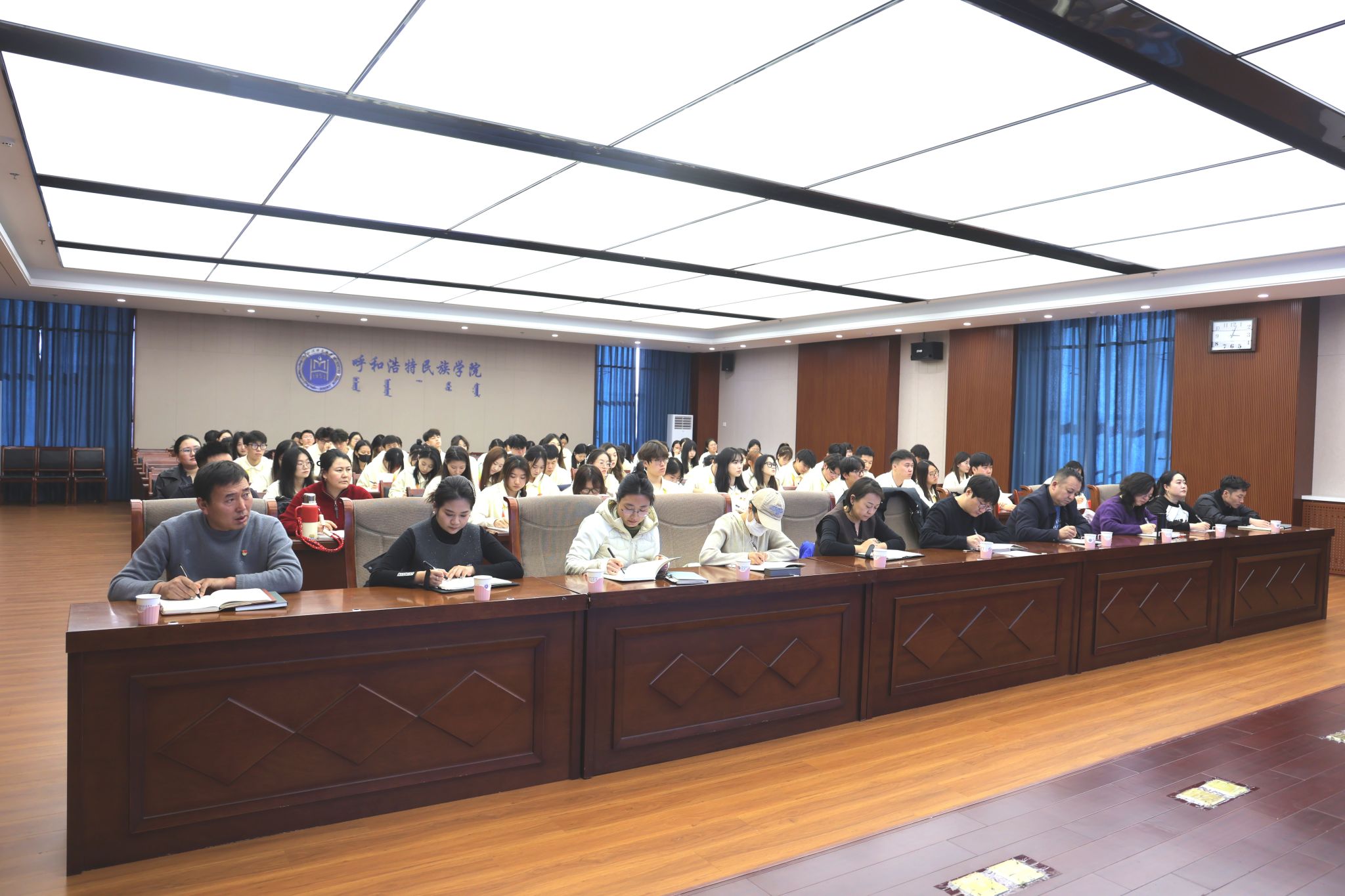 12月5日,校党委副书记格根哈斯以《深学力行党二十届四中全会精神——筑牢信仰之基 勇担强国使命》为题,为学校第十期“青马工程”培训班学员作党的二十届四中全会精神宣讲。校团委全体人员、各学院团总支书记、青马班学员120余人参加。