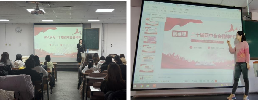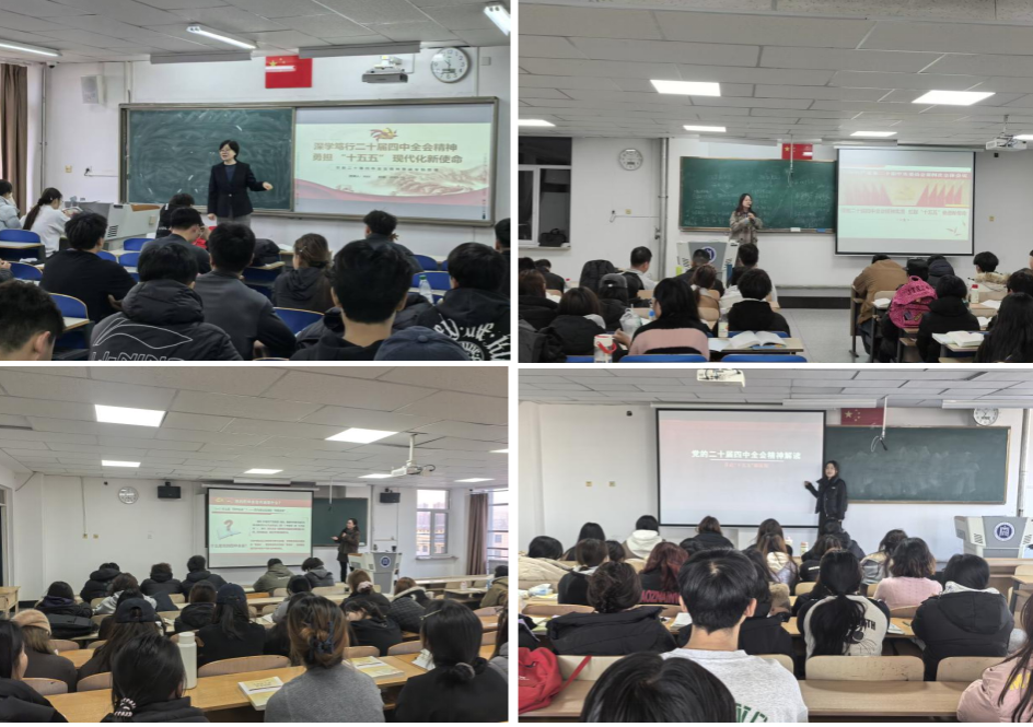 为深入学习宣传贯彻党的二十届四中全会精神,推动党的创新理论与思想政治教育深度融合,近期,马克思主义学院组织全体思政课教师,利用课堂主渠道,通过秋季学期“马克思主义基本原理”“思想道德与法治”“习近平总书记关于教育的重要论述”等思政课程课堂教学,深入开展了党的二十届四中全会精神专题宣讲,累计覆盖全校5000余名学生,让全会精神走进课堂、浸润学生心灵。