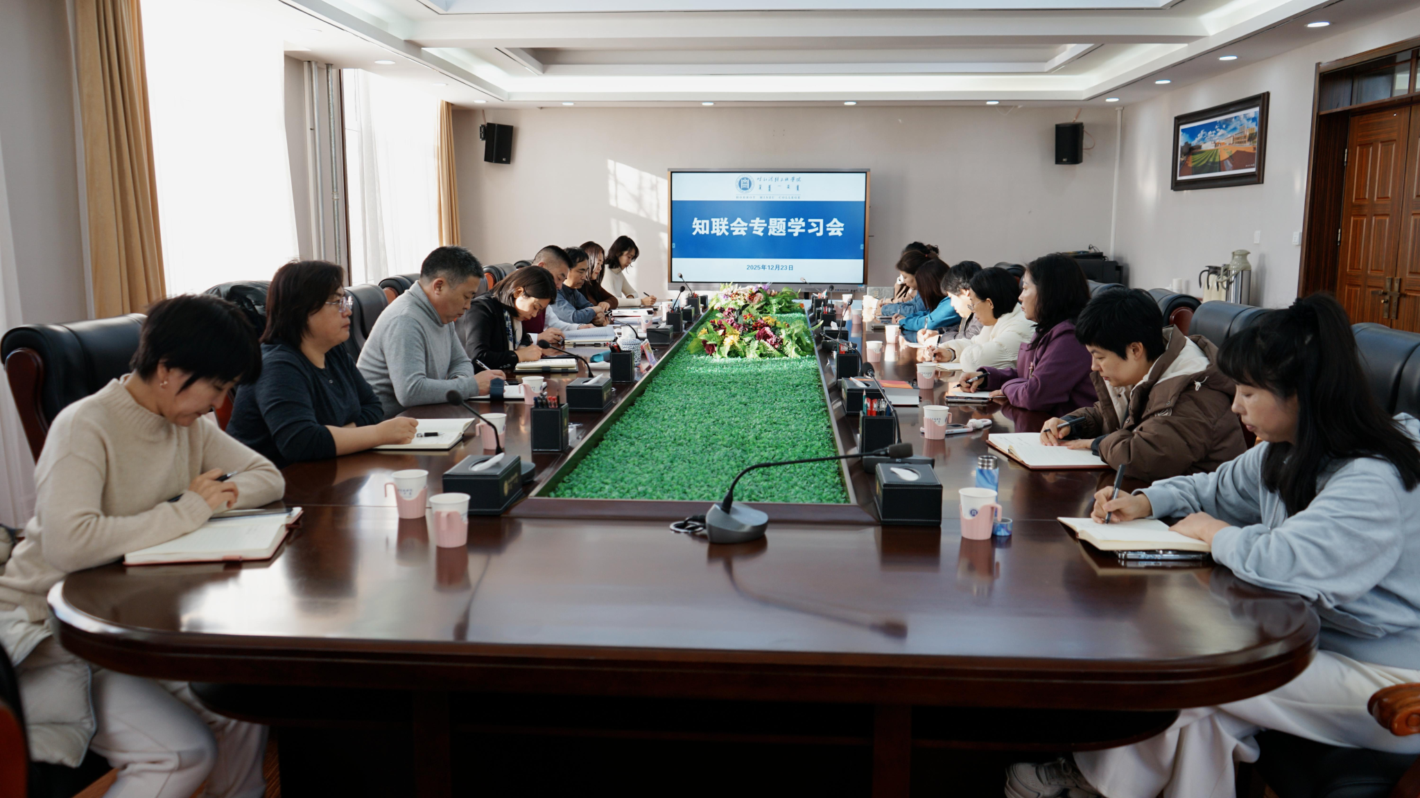 12月23日上午,学校在办公楼3楼会议室召开知联会专题学习会,传达学习2025年全区无党派人士和党外知识分子工作平台载体建设推进会精神。校党委副书记格根哈斯出席会议并讲话。
