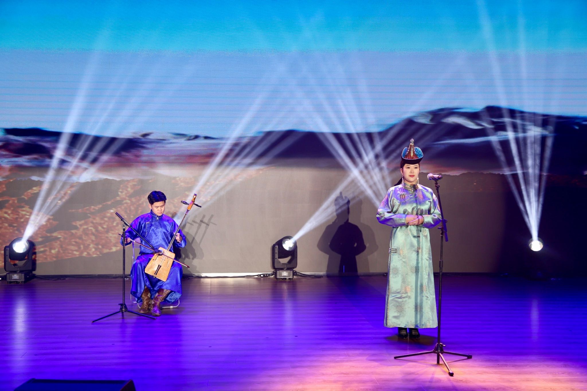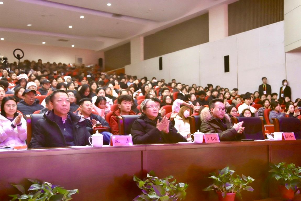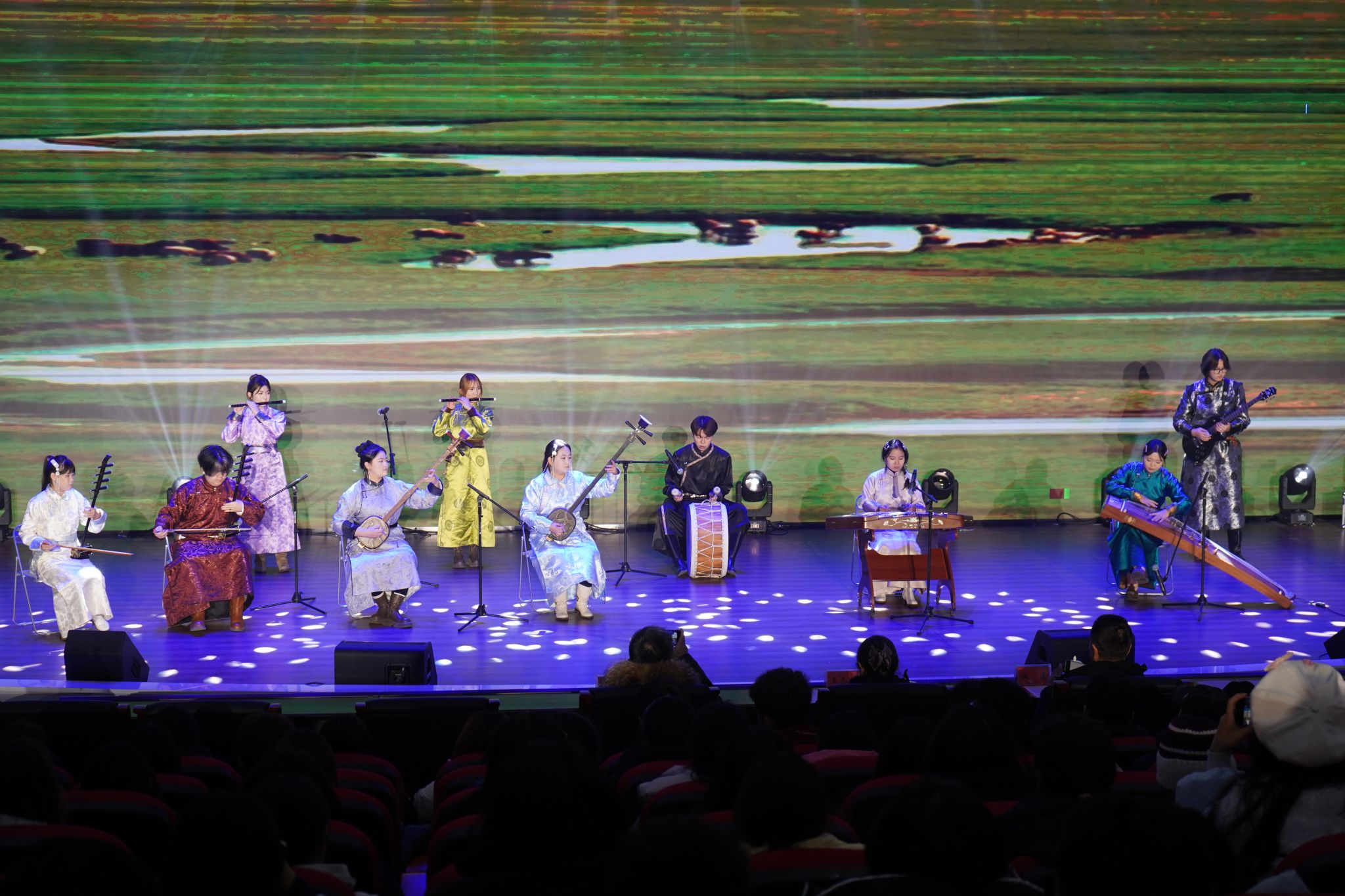 12月23日晚,“青春逢盛世,奋斗正当时”文艺晚会在学校铸牢中华民族共同体意识教育馆二楼报告厅隆重举行。整场晚会主题鲜明、编排精美,集中展现了我校美育实践教育阶段性成果,进一步营造格调高雅、青春向上的校园文化氛围。校党委委员、纪委书记、监察专员王冬梅,党委委员、副校长额尔敦布和,党委委员、副校长双虎出席晚会,学校各职能部门负责人、各学院党团总支书记代表及600余名师生共同观看文艺演出。