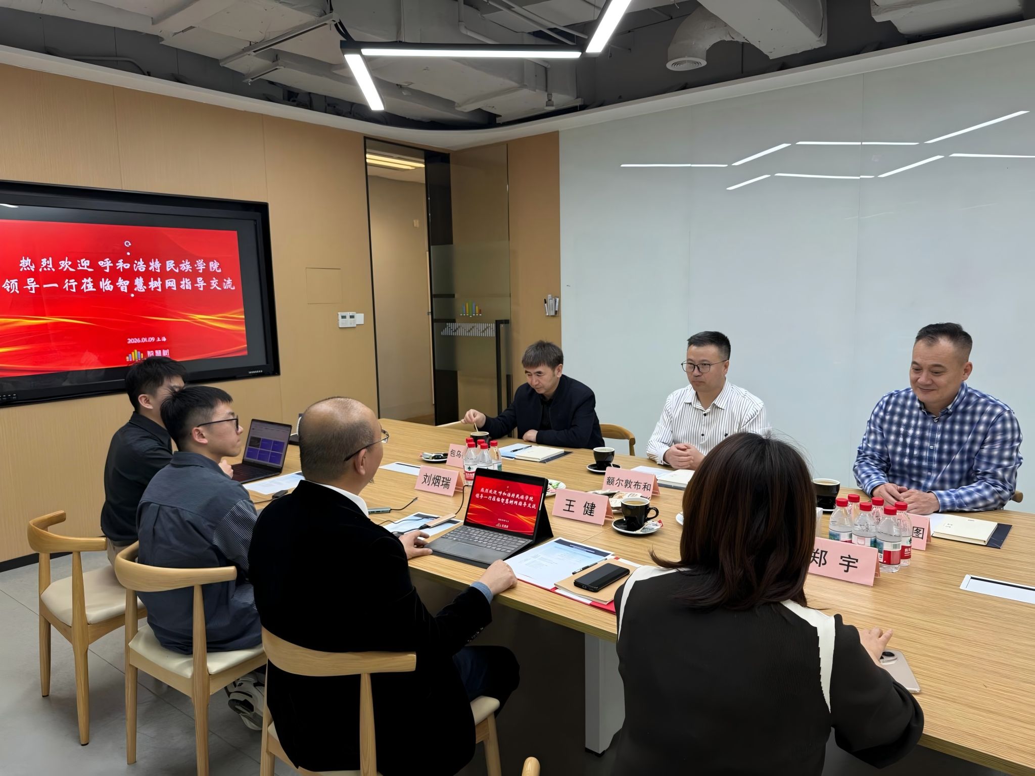 在上海卓越睿新数码科技股份有限公司,公司副总裁王健对额尔敦布和一行的到来表示热烈欢迎。双方围绕人才需求、智慧课程建设、人才培养方案优化等核心议题展开深入座谈。