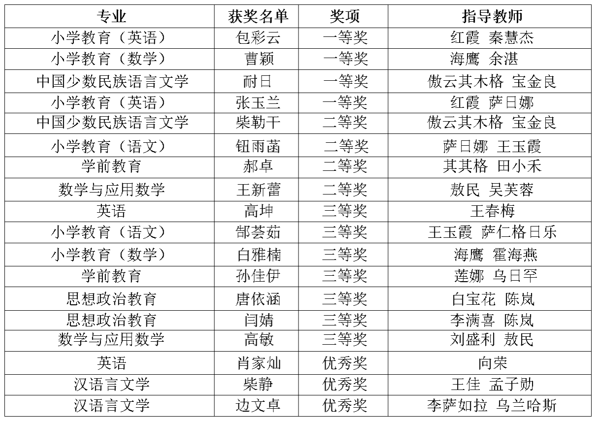 近日,在全区第三届师范生教学技能大赛中,我校选送的18名参赛学生表现优异,斩获4项一等奖、4项二等奖和7项三等奖,3项优秀奖,充分展现了我校学子的深厚底蕴和教学风采。