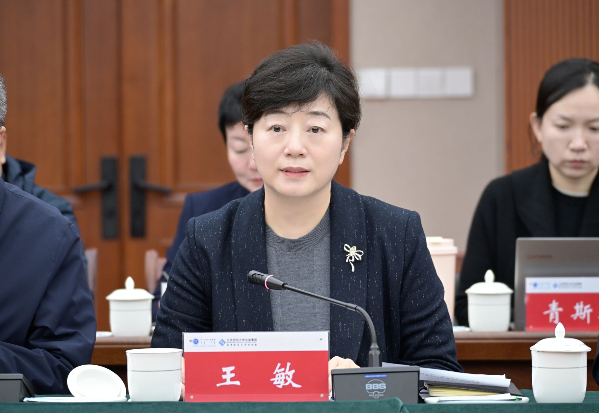 王敏代表学校对自治区教育厅领导莅临指导表示衷心感谢,对北京师范大学出版集团饶涛一行表示热烈欢迎,并介绍了学校基本情况。她指出,北京师范大学出版集团是国内教育出版领域的领军力量,为教育事业高质量发展提供了重要支撑。此次签约,标志着校社合作迈入全方位、深层次、常态化的新阶段。她希望,双方将以此次合作为契机,聚焦教材与课程建设,共建特色教材体系;聚焦学术出版与成果转化,打造学术传播高地;聚焦人才培养与师资发展,建强高素质专业化教师队伍;聚焦数字教育与融合出版,赋能教育数字化转型。