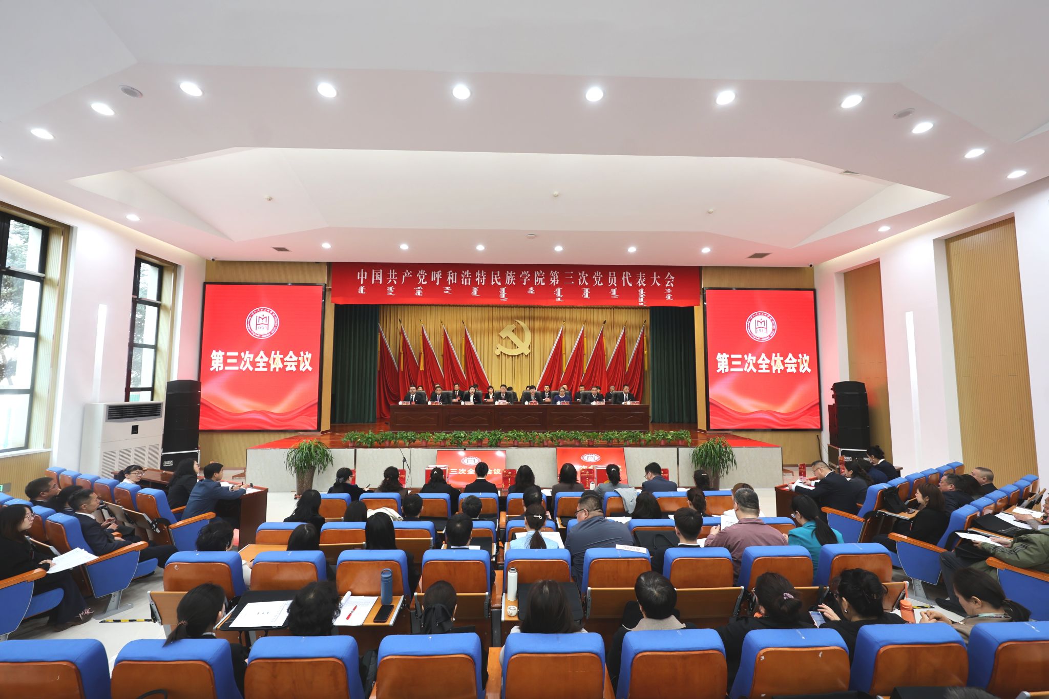 3月28日上午,中国共产党呼和浩特民族学院第三次党员代表大会第三次全体会议和闭幕会在百年讲坛举行。刘九万同志主持大会。