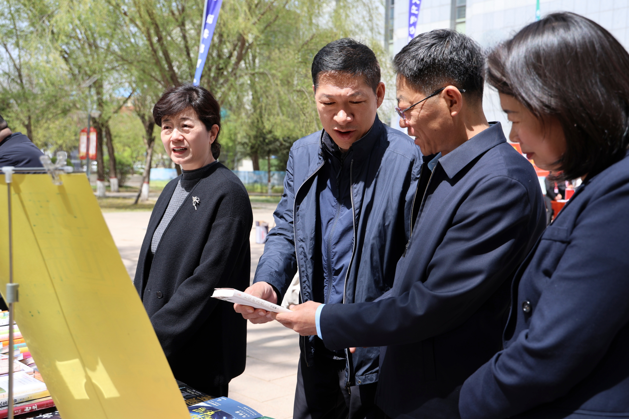 书香滋养民院,阅读开启新程。为深入贯彻落实《全民阅读促进条例》精神,积极响应《中共中央关于制定国民经济和社会发展第十五个五年规划的建议》中“推进书香社会建设”的相关部署,进一步实施教育部、中央宣传部《关于深入实施全国青少年学生读书行动的通知》的“五大工程”,助力首个“全民阅读活动周”形成广泛社会影响,在第31个“世界读书日”来临之际,学校图书馆联合宣传部、教务处、学生工作部、团委等部门,于4月22日举办呼和浩特民族学院“读书月”活动启动仪式暨“书话雅集”系列活动。校党委书记刘九万,党委副书记、校长王敏等全体校领导莅临活动现场指导工作,并与师生亲切交谈,了解活动现场工作开展情况,鼓励大家多读书、读好书,获取知识、增长智慧;并要求相关职能部门要做好服务保障工作,常态化开展读书系列活动,引导学生养成“爱读书、读好书、善读书”的良好习惯,持续营造浓厚的书香校园氛围。
