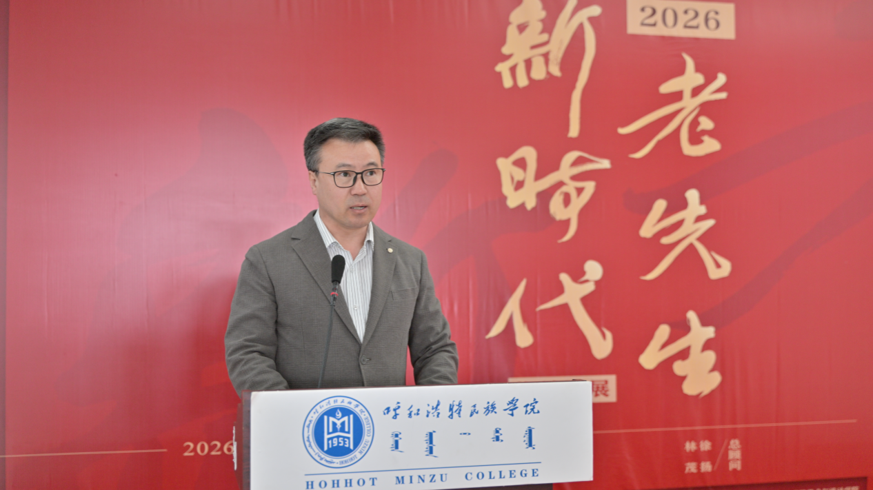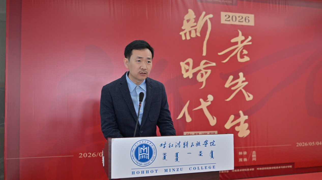 开幕式上,额尔敦布和代表学校致欢迎辞。他表示,作为民族地区高等院校,学校始终以铸牢中华民族共同体意识为主线,将美育贯穿人才培养全过程,着力打造具有北疆特色的美育阵地。此次“老先生·新时代”美术作品展走进校园,既是对我校美育工作的肯定与鞭策,更是校际深化美育协作、传承中华优秀文化的重要契机,必将推动学校美育工作提质增效,为师生搭建起互学互鉴的高端平台。