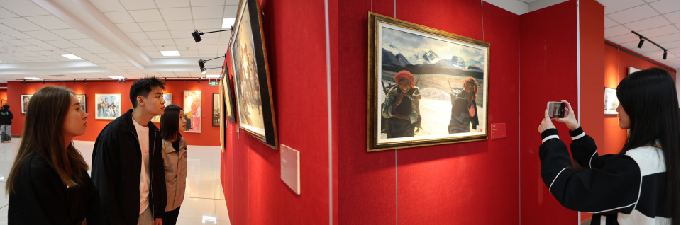 春和景明,艺韵满盈。4月23日,中央美术学院“老先生·新时代”美术作品展内蒙古高校巡展(呼和浩特民族学院站)在学校铸牢中华民族共同体意识教育馆隆重启幕。本次展览为期15天,从4月19日持续至5月4日,由中央美术学院主办,中央美术学院关心下一代工作委员会、中央美术学院美术馆与我校美术与设计学院联合承办,为全校师生带来了一场兼具思想深度与艺术美感的视觉盛宴,让百年央美的美育精神在北疆校园落地生根。