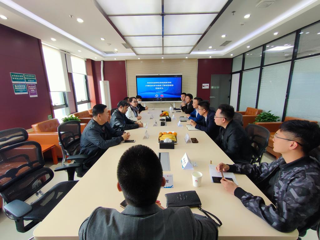 2022年4月28日、5月17日计算机学院班子成员、毕业班班主任、辅导员分别来到了大学生科技创业园和华为内蒙古分公司进行了座谈交流。我院优秀毕业生、现任职于华讯高科的白故鲁奇陪同参加座谈会。