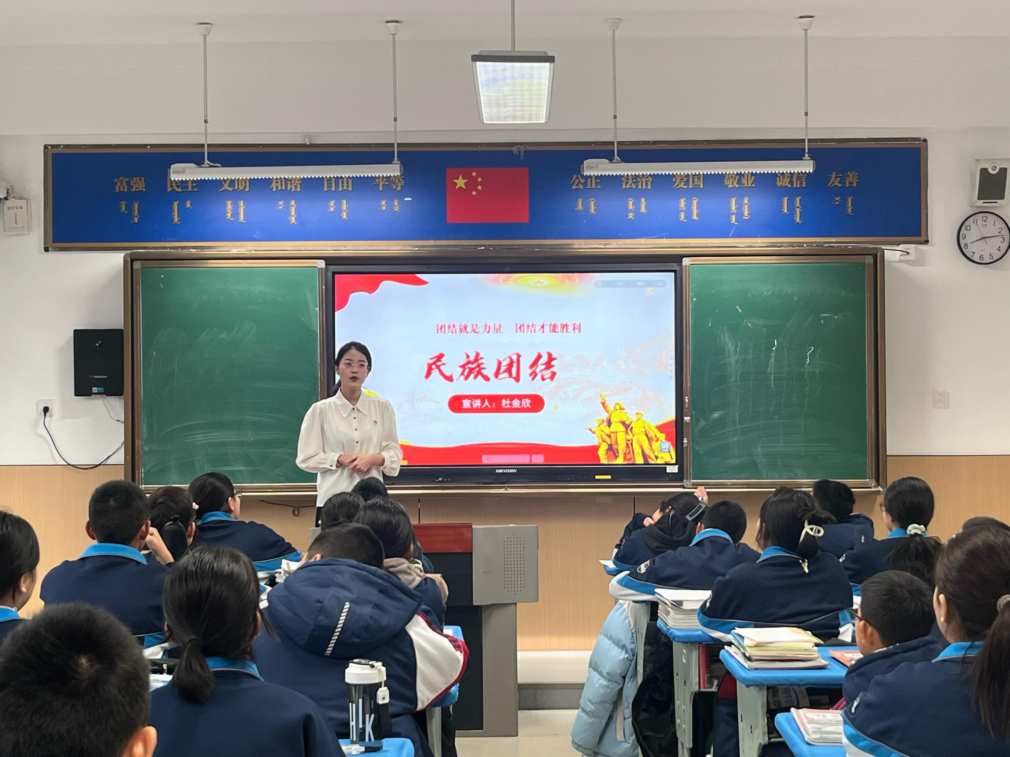 为深入学习贯彻习近平总书记关于加强和改进民族工作的重要思想,进一步铸牢中华民族共同体意识,凝聚团结奋进的力量,文学院宣讲团成员于11月27日,在呼和浩特市蒙古族学校开展“民族团结故事进校园”主题实践活动。