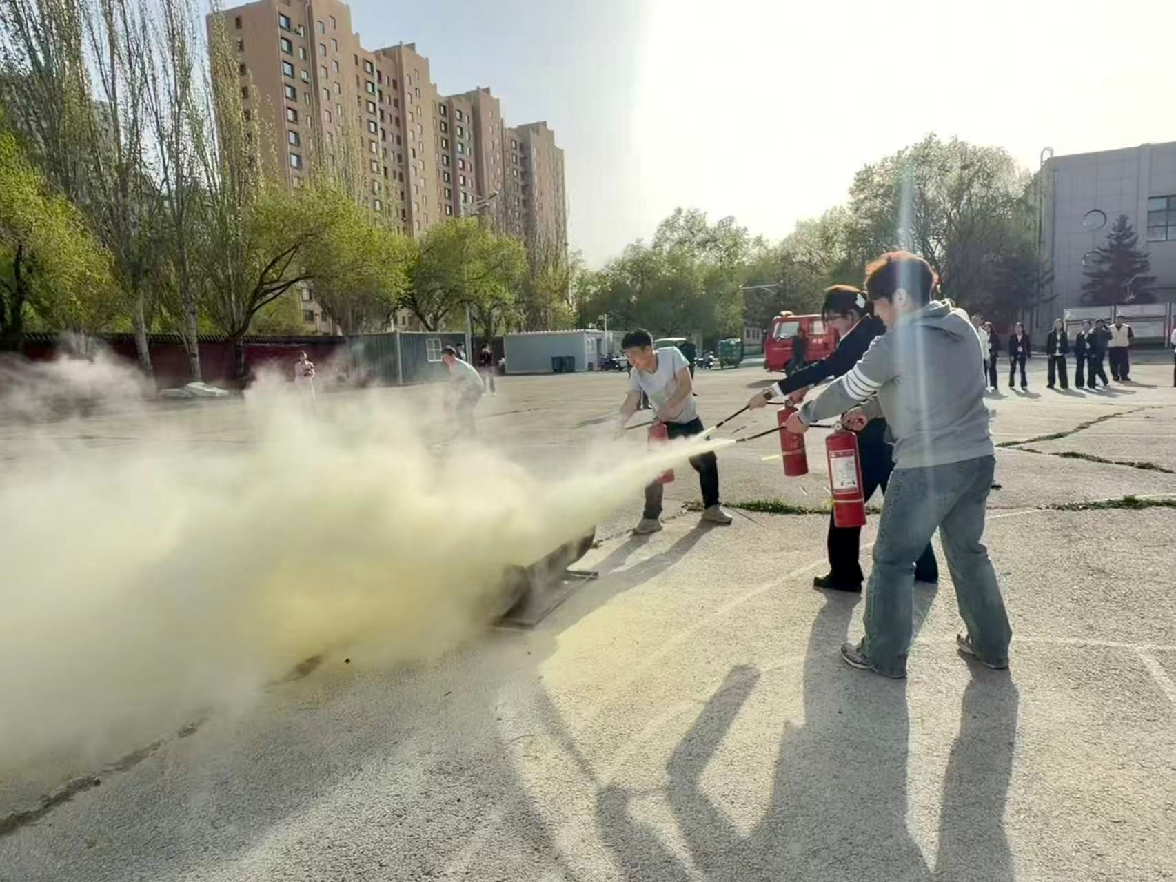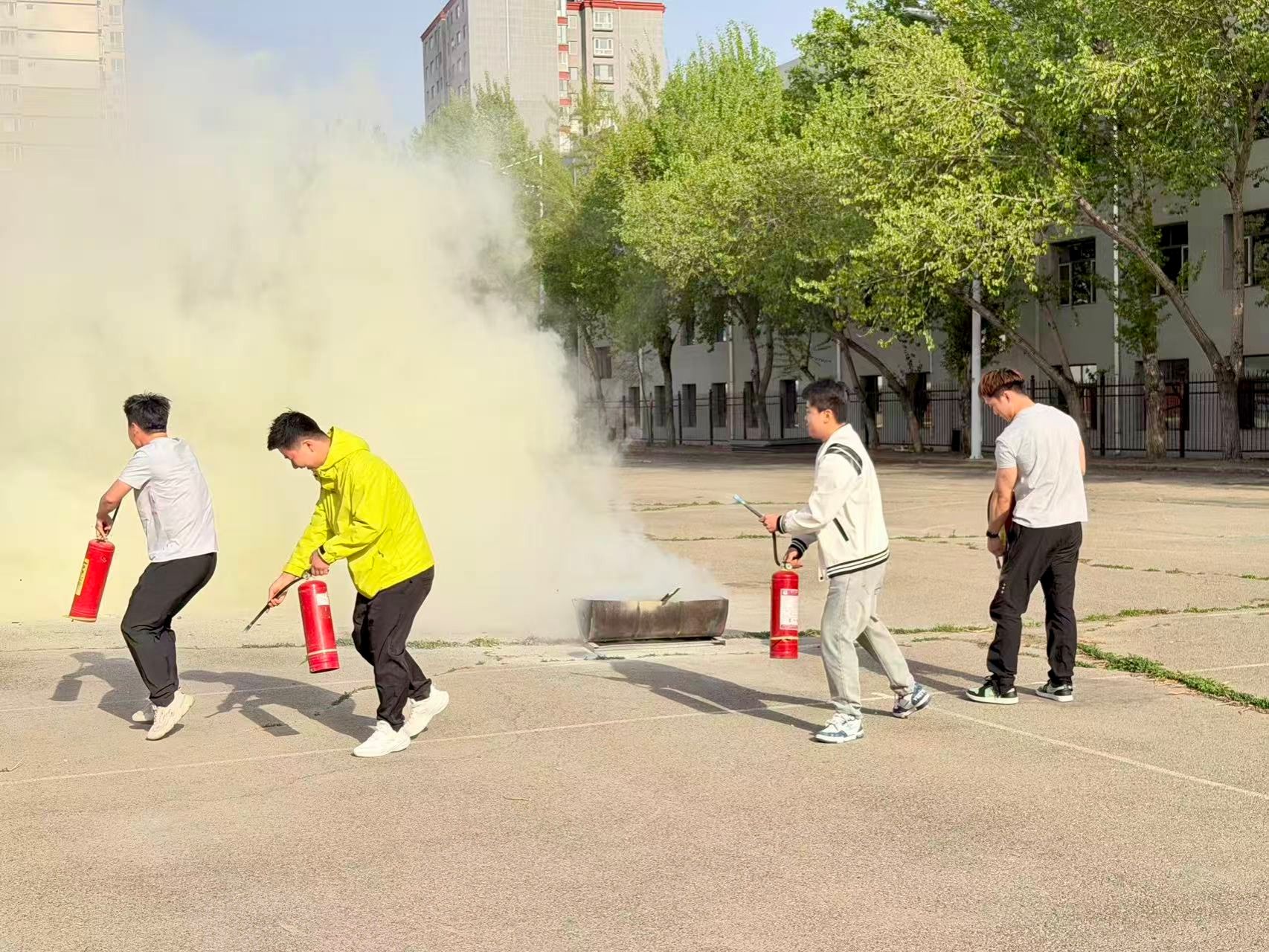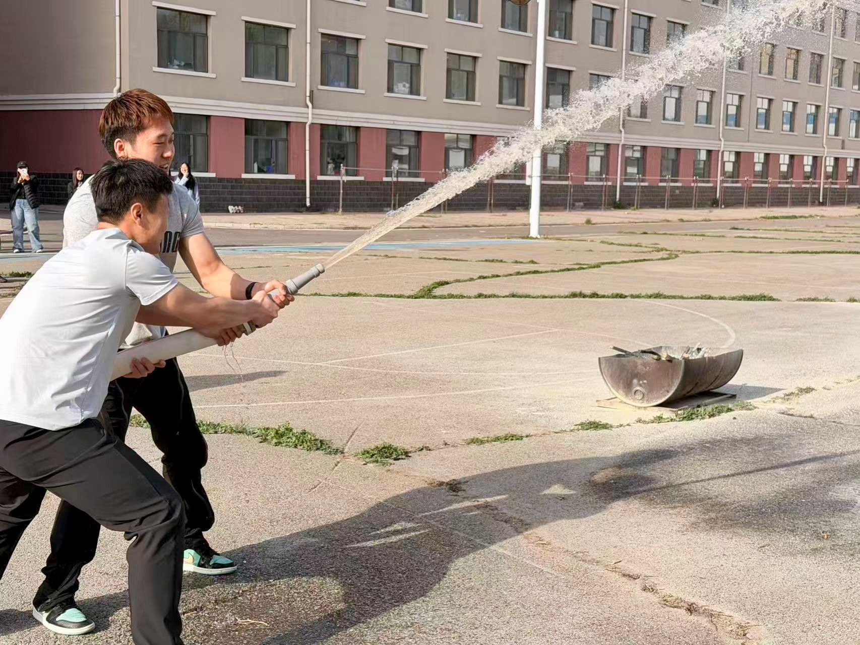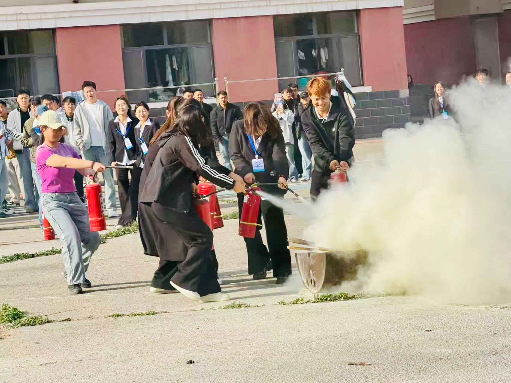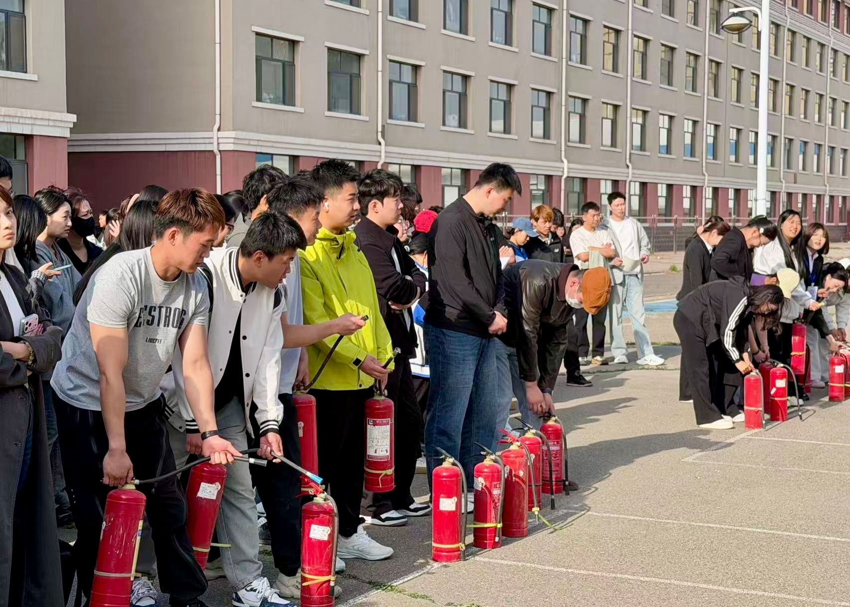 讲座结束后,两学院在百年讲堂及十号公寓前开展消防应急疏散演练,同时开展灭火器、消火栓等常用消防器材使用方法的现场教学与实操演练。现场工作人员指导学生规范操作消防器材,纠正操作误区,确保学生掌握灭火器材正确使用流程,做到学以致用、知行合一。