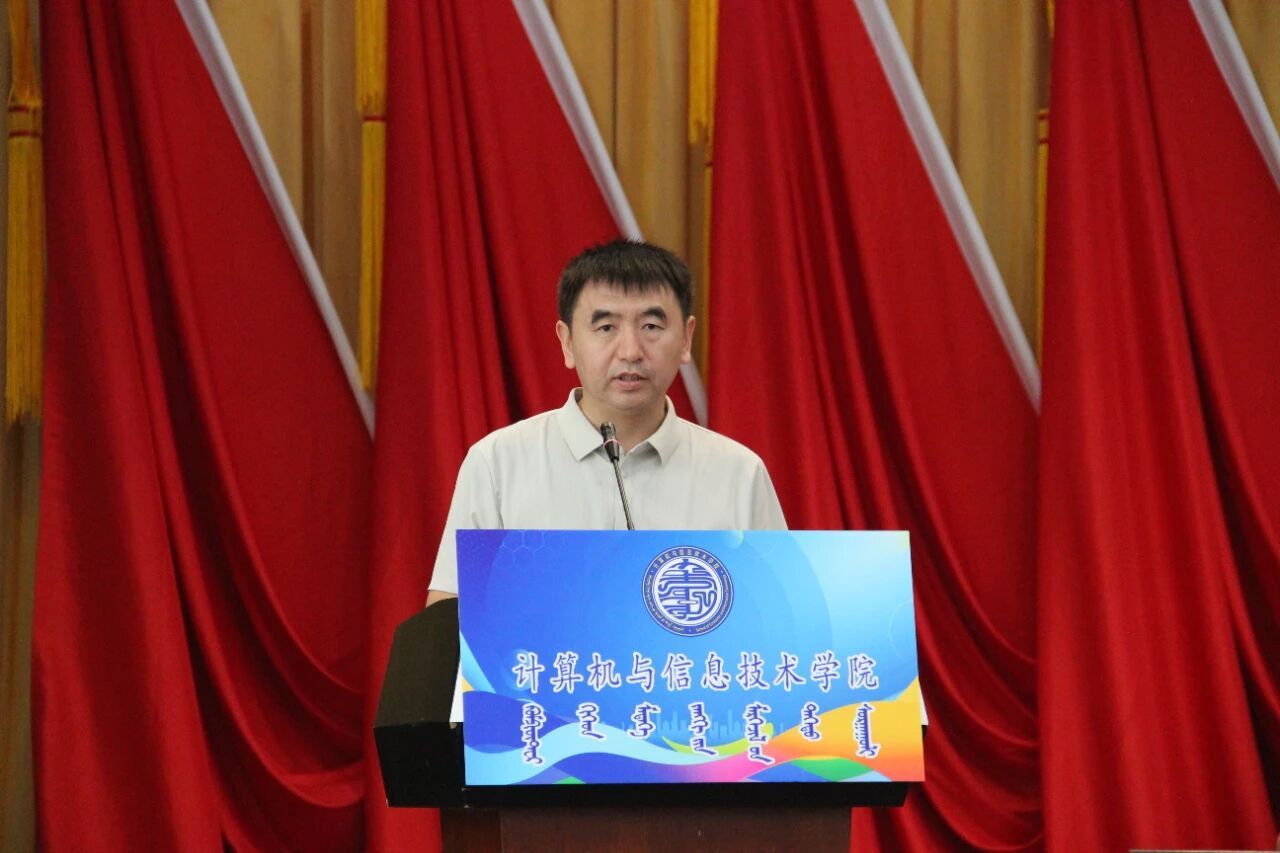 2025年8月31日下午,计算机与信息技术学院在学术报告厅召开2025级新生见面会暨军训动员会。学院领导班子及新生班主任、辅导员与全体2025级新生共同参会,会议由学院团总支书记包巴雅力格主持。