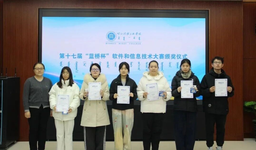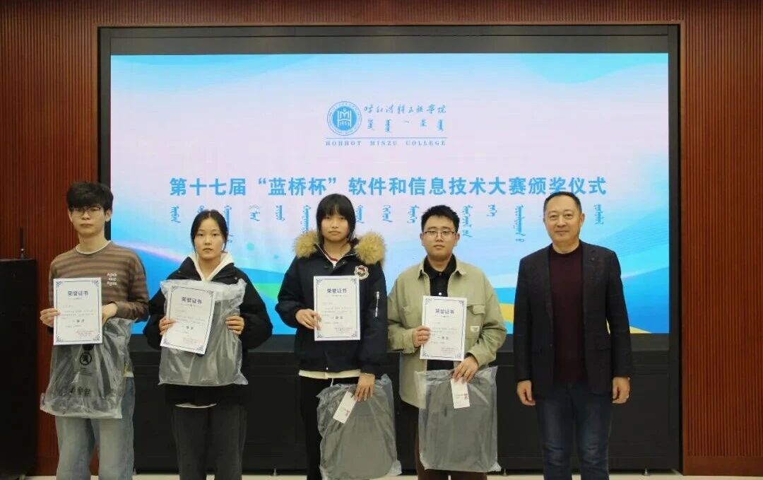 12月23日中午,在综合楼11楼会议室举行颁奖仪式,智能科学学院副院长哈斯、计算机与信息技术学院副院长色登丹巴、澈力木格老师作为颁奖嘉宾为获奖同学颁奖。