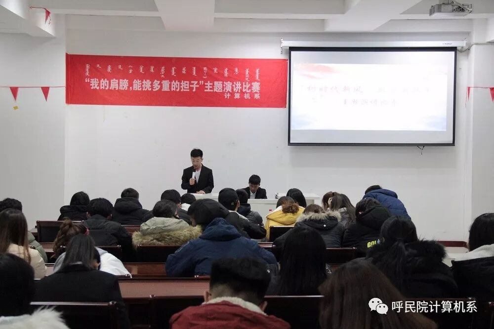 根据《呼和浩特民族学院“我的肩膀—能挑多重的担子”主题讨论及实践活动暨首届文化艺术活动月工作方案》要求,我系于12月2日晚在都林楼116教室举办“我的肩膀-能挑多重的担子?”为主题的演讲比赛。
