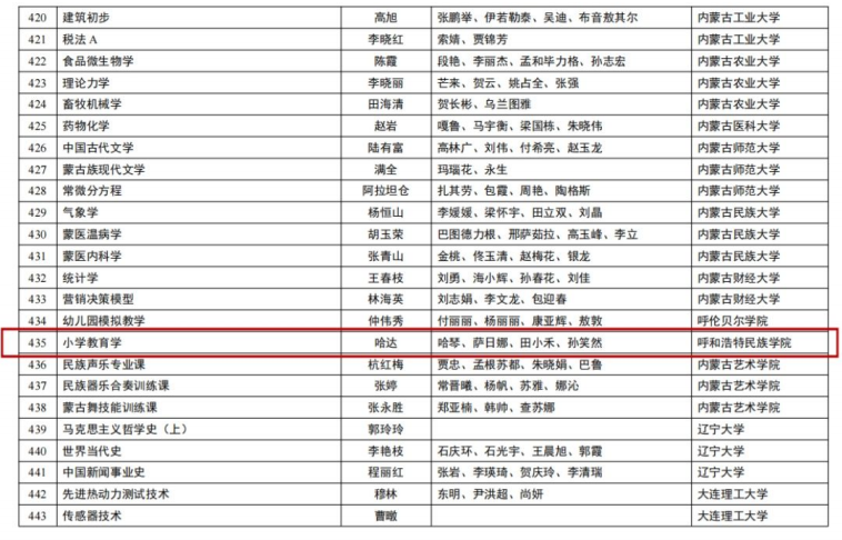 此次入选的23门课程中,包含线上一流课程1门、虚拟仿真实验教学一流课程1门、线上线下混合式一流课程5门、线下一流课程13门、社会实践一流课程3门。截至目前,学校共有37门课程入选自治区一流本科课程。
