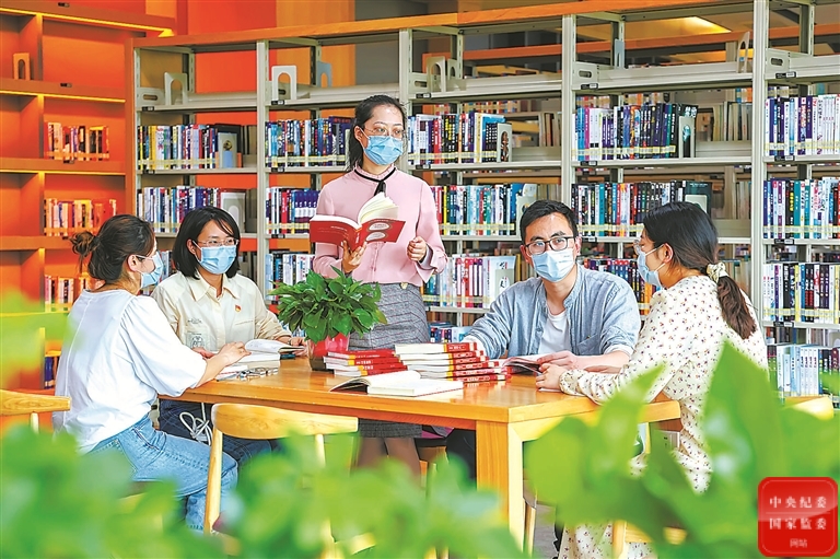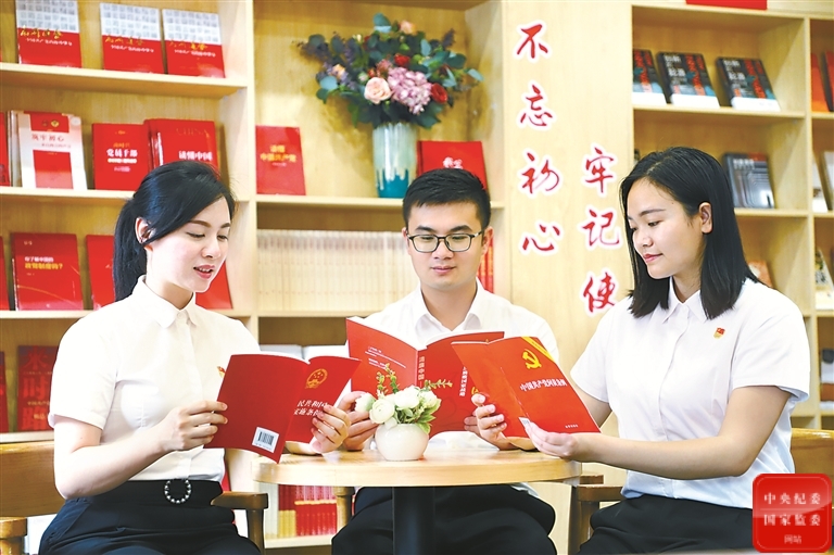 广西壮族自治区崇左市江州区纪委监委组织纪检监察干部通过个人学习、小组分享等多种形式,在工作之余多读书、读好书。图为该区青年纪检监察干部利用休息时间学习业务知识。黄朝明 摄