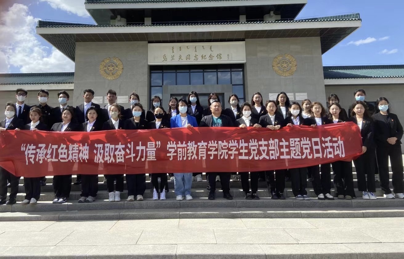 为深入开展学习贯彻习近平新时代中国特色社会主义思想主题教育,扎实有效地推进党史教育。于6月1日下午学前教育学院学生党支部书记萨日胡、组织委员斯日古冷带领全体在校学生党员参观学习乌兰夫纪念馆,重温红色基因,感悟党史精神。