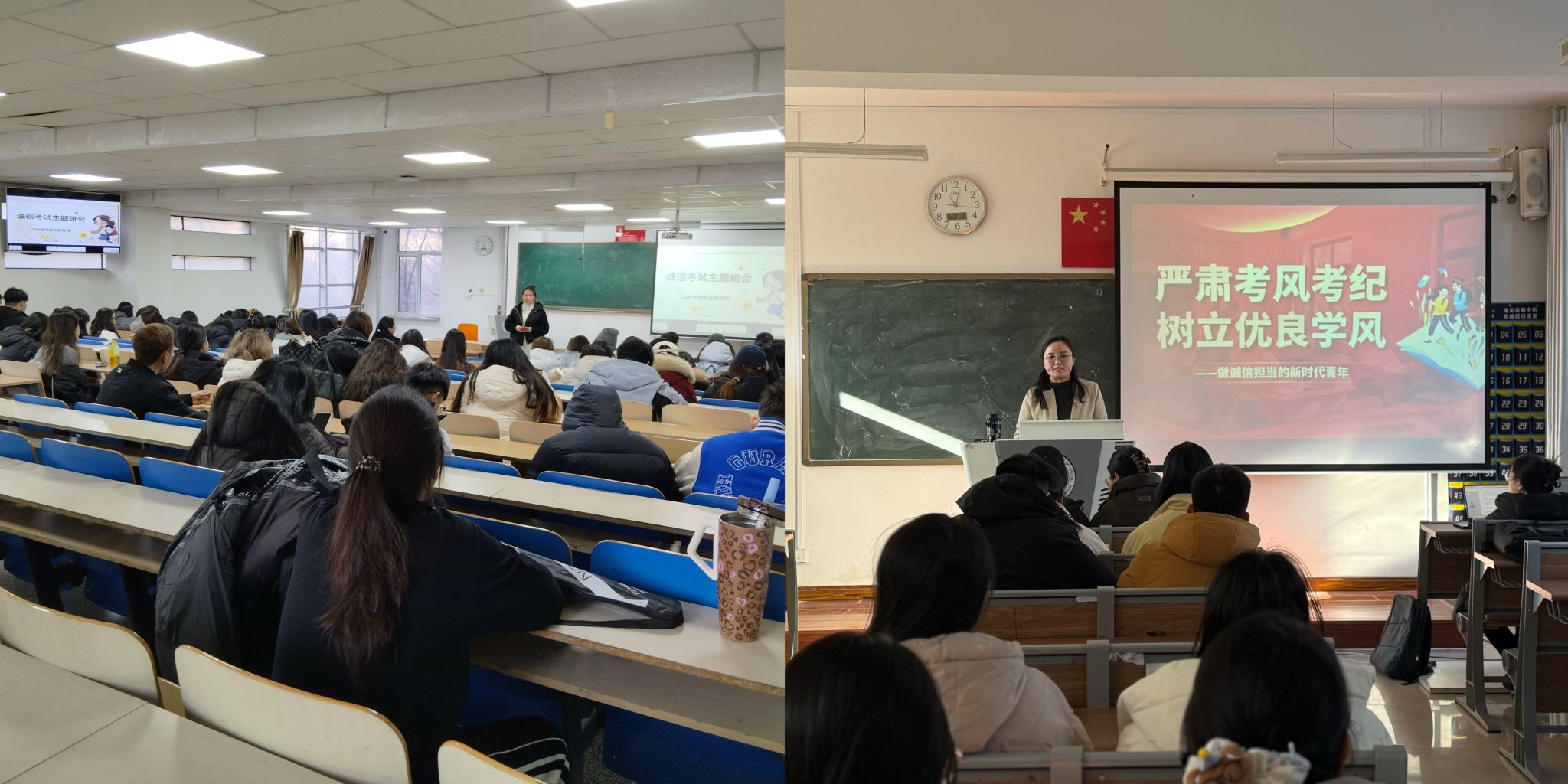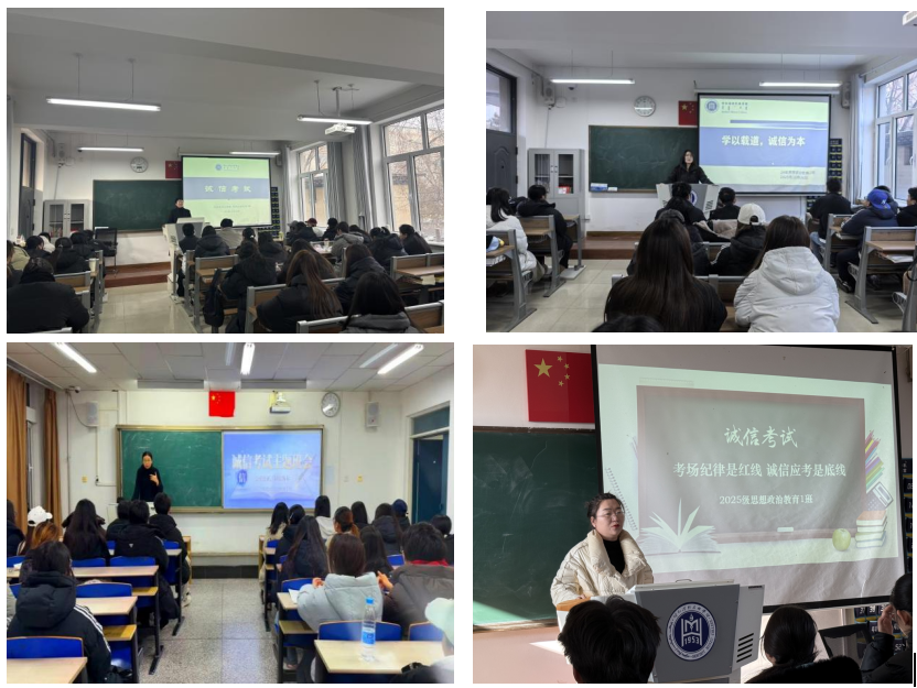 为贯彻落实学院期末考试工作部署,进一步强化学生诚信应考意识,营造公平公正、风清气正的考试氛围,12月24-26日,马克思主义学院思想政治教育专业各班级陆续召开诚信考试主题班会,全体思政专业学生参会。