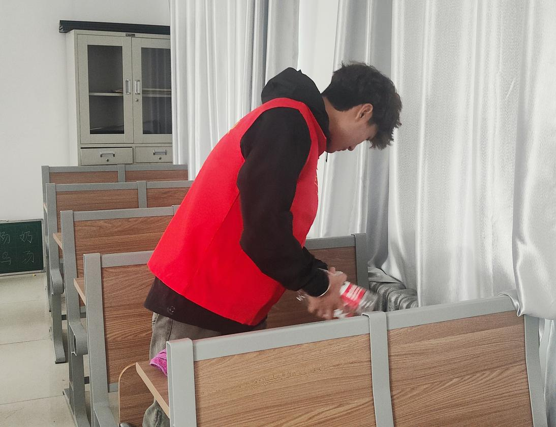 我院组织志愿者开展捡拾校内公共场所垃圾、美化校园环境活动,深入教室开展卫生大扫除、清洗乱涂乱画桌椅和铲除“小广告”、清理卫生死角、清除白色垃圾等活动,有效整治校园脏、乱、差,实现洁、齐、美。