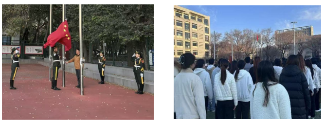 10月27日7时,马克思主义学院在南苑操场举行升国旗仪式,深化爱国主义教育。晨光中,学子精神昂扬静候国旗。国歌奏响,五星红旗冉冉升起,全体肃立行注目礼,齐声高唱表达对祖国的热爱与敬意。