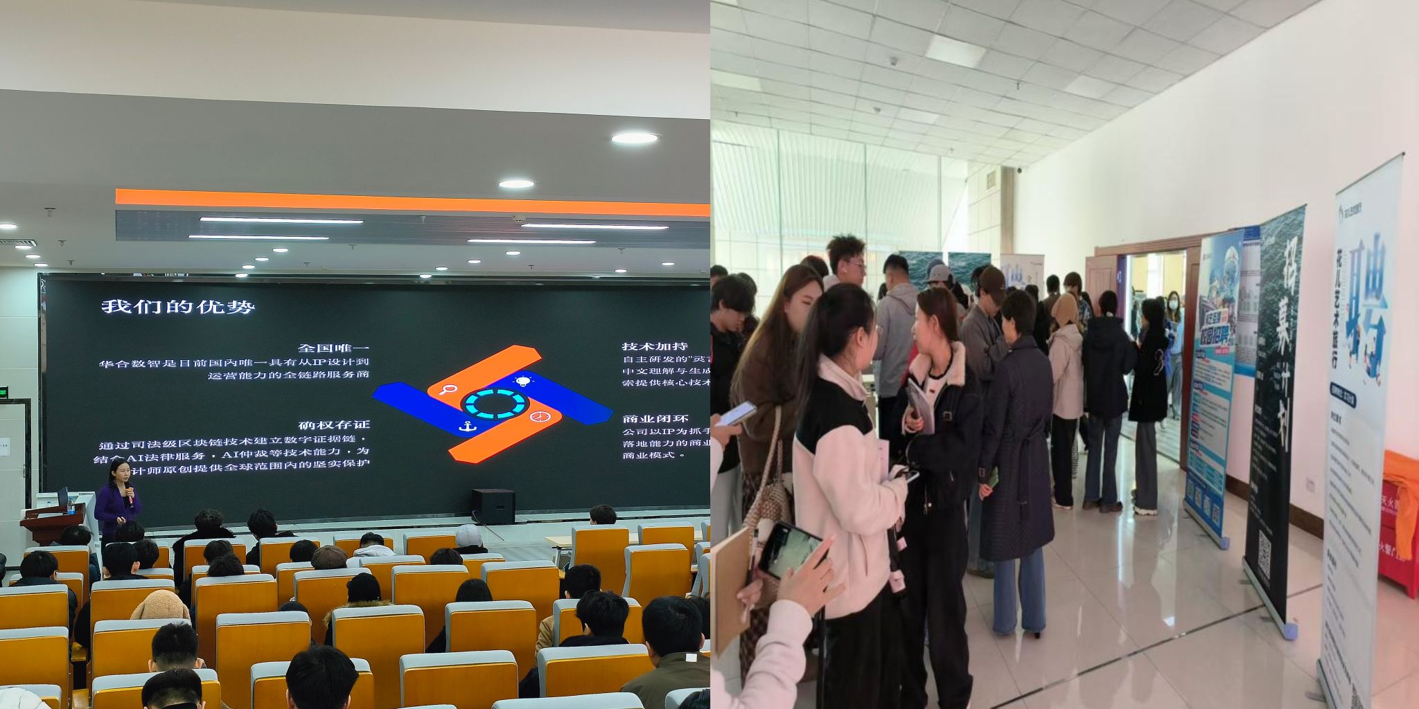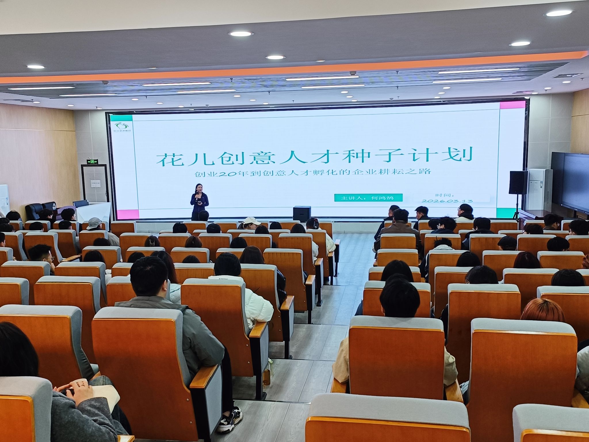 宣讲会上,重庆花儿艺术旅行负责人何鸿鹄分享了创业经历、非遗探索及 “花儿种子计划”,并介绍了华合数智公司发展愿景与 “华合杯” 设计大赛征集赛道。本次招聘提供全栈开发工程师、实习服务顾问、非遗部产品销售、实习计调等岗位,计划招聘 12-22 人。互动环节中,企业代表现场解答学生疑问,8 名学生当场投递简历,20 余名学生加入“华合杯” 设计大赛交流群。