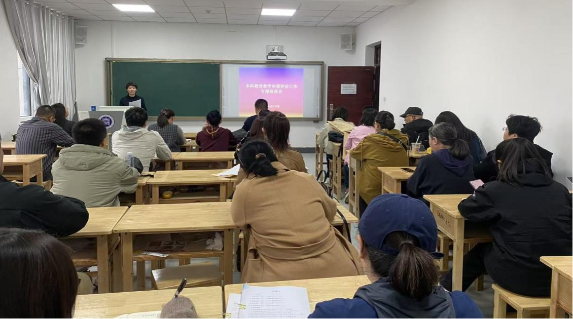 随后,高特木乐院长依据学校本科教育教学审核评估教师访谈座谈培训内容,围绕本科教育教学审核评估的重要性、评估核心、流程安排以及评估形式等,向全体教师进行培训。并就进一步严抓课堂常规管理、提升教学质量,引导学生重视评估意义、规范学生课堂行为,若遇专家听课、看课、查课等情况,保持平常心,如实反馈学习体验与需求,共同营造良好的评估环境等进行提醒。