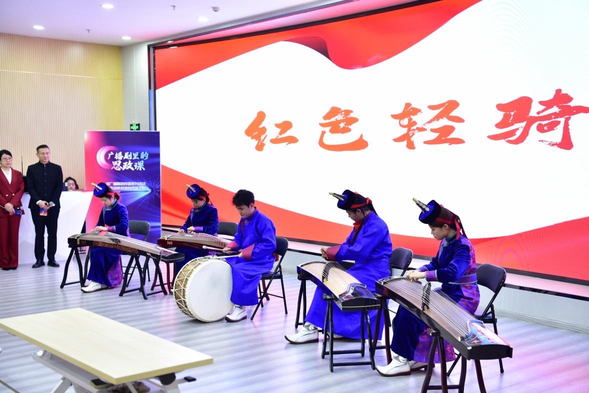 现场,呼和浩特民族学院学生表演了古筝齐奏《红色轻骑兵》。