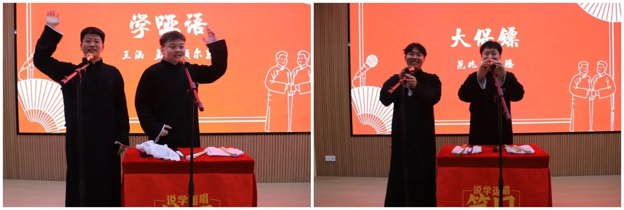 活动开场,主持人介绍了活动背景、相声非遗价值、到场嘉宾及节目单,正式拉开演出帷幕。本次专场共呈现《黄鹤楼》《学哑语》《打灯谜》《智取威虎山》《大保镖》5个经典相声节目,演员们以扎实的功底、默契的配合,将相声“说学逗唱”的艺术魅力演绎得淋漓尽致,现场掌声、笑声此起彼伏,气氛热烈高涨。节目表演结束后,演员们返场加演,为整场演出画上圆满句号。