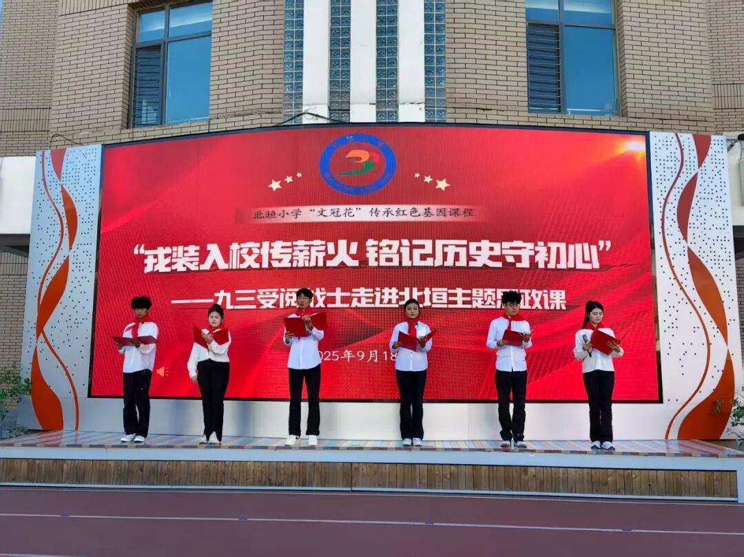 为深化青少年爱国主义教育,9月18日,我校与北垣小学联合举办“戎装入校传薪火 铭记历史守初心”主题思政课活动。我校20余名学生、北垣小学近千名师生参加活动。