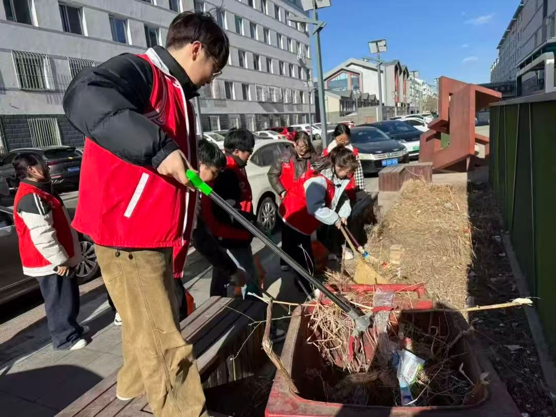 为深入弘扬雷锋精神,扎实推进铸牢中华民族共同体意识教育,以实际行动美化社区环境、服务居民群众,3月5日下午,我校组织青年志愿者服务队走进回民区巴彦淖尔北路社区,开展“石榴籽”环境整治学雷锋志愿服务活动。青年学子以劳动践行初心,用奉献传递温暖,让雷锋精神在基层一线落地生根。