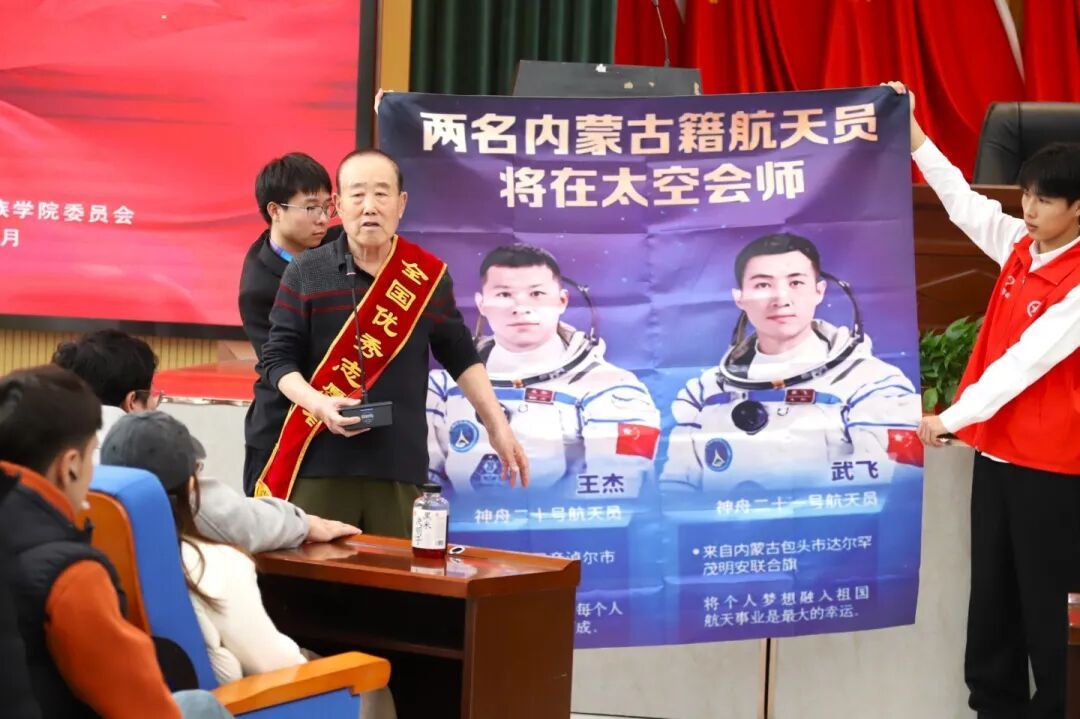 活动中,师生们通过事迹介绍、公益宣传片了解到,拥有60年党龄的魏明同志从军从警四十余载,退休后深耕公益宣讲超740场、帮扶31名困境儿童,斩获北疆楷模、全国道德模范提名奖等多项荣誉,是雷锋精神的生动践行者。魏明同志现场结合自身经历,用朴实的话语分享践行雷锋精神的点滴,让在场师生深受触动。活动最后,学生代表为魏明同志献花,致以崇高敬意。