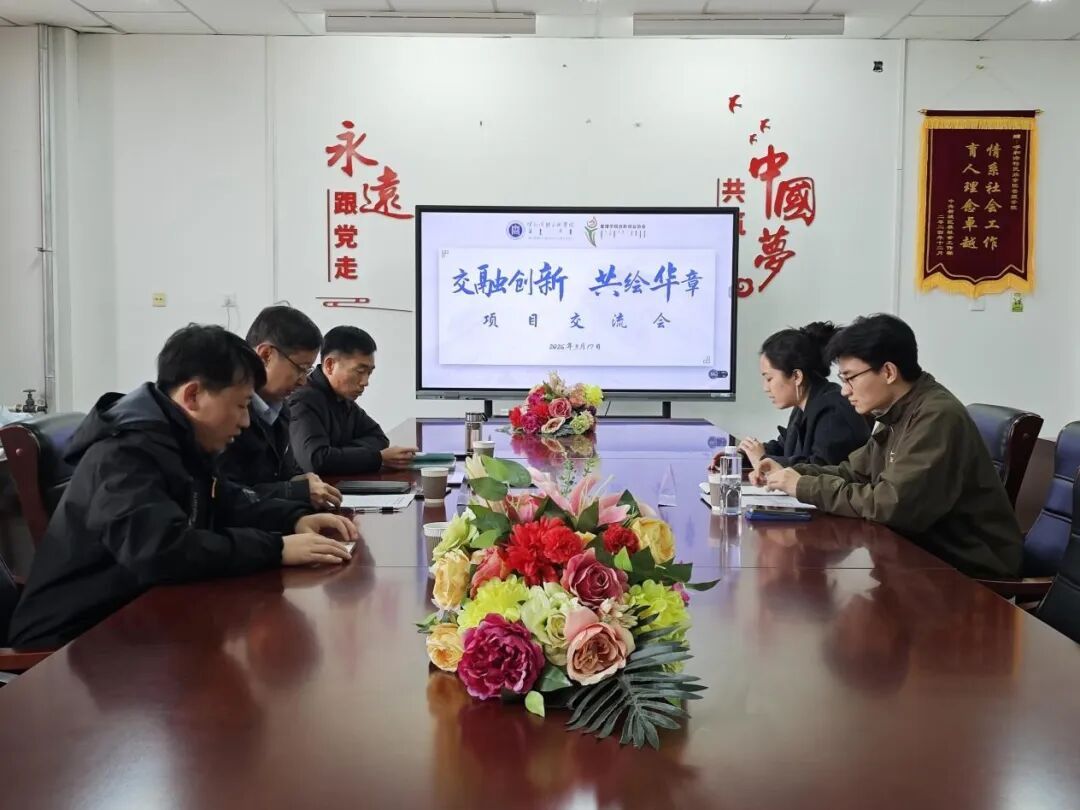 2026年3月17日下午,管理学院在会议室举行“交融创新·共筑华章”项目交流会。管理学院院长哈斯同力嘎、团总支书记宝连、专职辅导员庄晓岩、赛事负责学生白美淋以及学院各参赛项目核心成员参加了会议。会议特邀内蒙古赤峰市泽被后世文化有限公司总经理、我院新聘创新创业导师刘书泽先生作为主讲嘉宾。