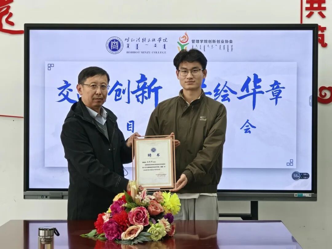 交流会上,哈斯同力嘎院长为刘书泽先生颁发了聘书,正式聘任其为管理学院创新创业项目导师。团总支书记宝连随后介绍了学院“挑战杯”竞赛的总体备赛情况。赛事负责人白美淋对学院培育的多个项目进行了简要介绍。刘书泽在听取完绍后,就项目优化、答辩技巧等方面提出了初步修改意见。