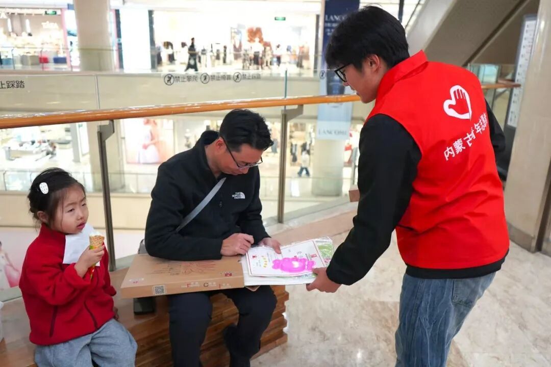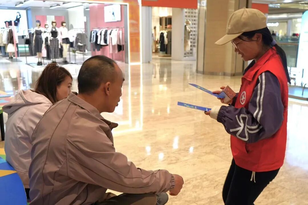 活动伊始,志愿者们迅速完成分工,全力投入现场服务。在秩序维护岗位上,引导市民有序参与、保障现场秩序顺畅;在公益宣传岗位上,通过发放宣传单页科普孤独症知识,引导社会正确认识这一群体,传递包容理念;在核心互动环节,志愿者们化身“陪伴者”与“助力者”,陪伴孤独症儿童开展趣味互动与手工创作,同时协助开展手工作品义卖,向市民传递公益善意,号召大家关爱支持特殊群体。