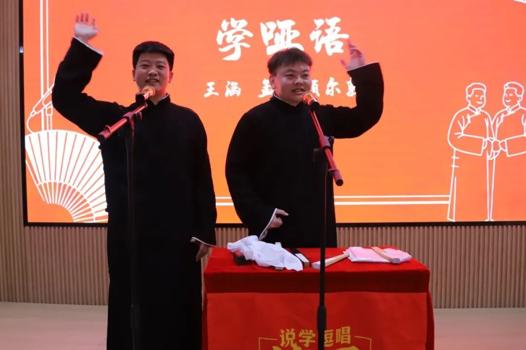为传承中华优秀传统文化,丰富校园文化生活,4月12日下午,我校团委在青春驿站举办“非遗曲艺进校园”相声专场演出。此次活动由我校、呼和浩特市曲艺家协会联合主办,我校团委、呼和浩特市高校曲艺联盟共同承办。全校100余名师生及曲艺爱好者参与活动。