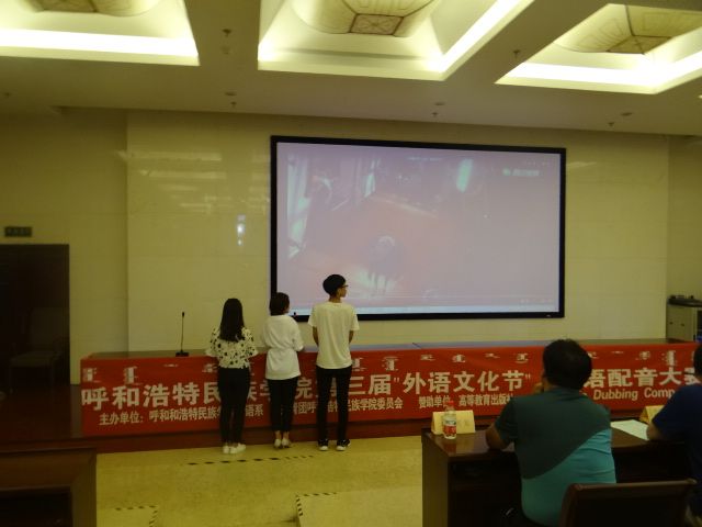 来自内蒙古师范大学的丽丽老师、阿拉腾宝力格老师和我校外语系英语教研室潘兴安老师、曼杜呼老师担任大赛评委。本次比赛共有7组选手进入决赛,配音作品有《神偷奶爸》《马达加斯加3》《冰雪奇缘》《守护者联盟》《穿普拉达的女王》《愤怒的小鸟》《朝五晚九》等影视作品及动画片选段。参赛选手充分发挥想象力和创造力,将配音人物性格刻画地淋漓尽致、惟妙惟肖。比赛历时2个小时,最终2016级日语班的《朝五晚九》荣获一等奖,《神偷奶爸》和《穿普拉达的女王》荣获二等奖,其余四组选手分获三等奖。2015级英语教育3班的哈尔吉同学和2016级日语班的苏义拉乌德勒呼同学分获最佳男配音奖和最佳女配音奖。