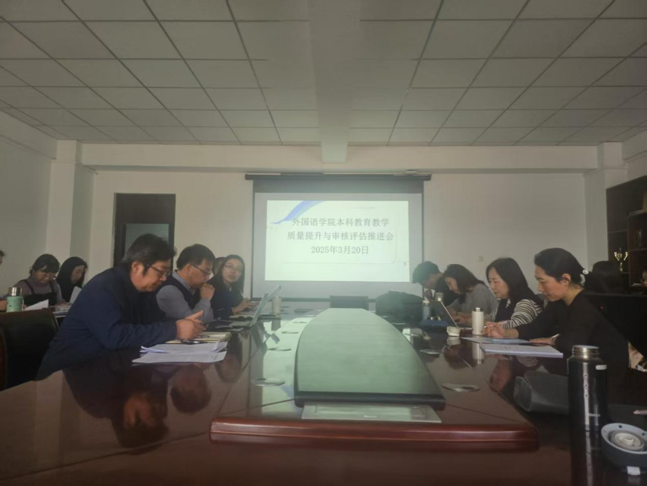 为全面贯彻呼和浩特民族学院“本科教育教学质量提升年”工作部署,落实新一轮本科教育教学审核评估要求,外国语学院于3月20日在都林楼611会议室召开专题培训会。会议以"强能力、促改革、迎评估"为主线,系统部署教师队伍建设和评建准备工作。学院党政领导班子及全体教职工参会,共同谋划高质量发展新路径。