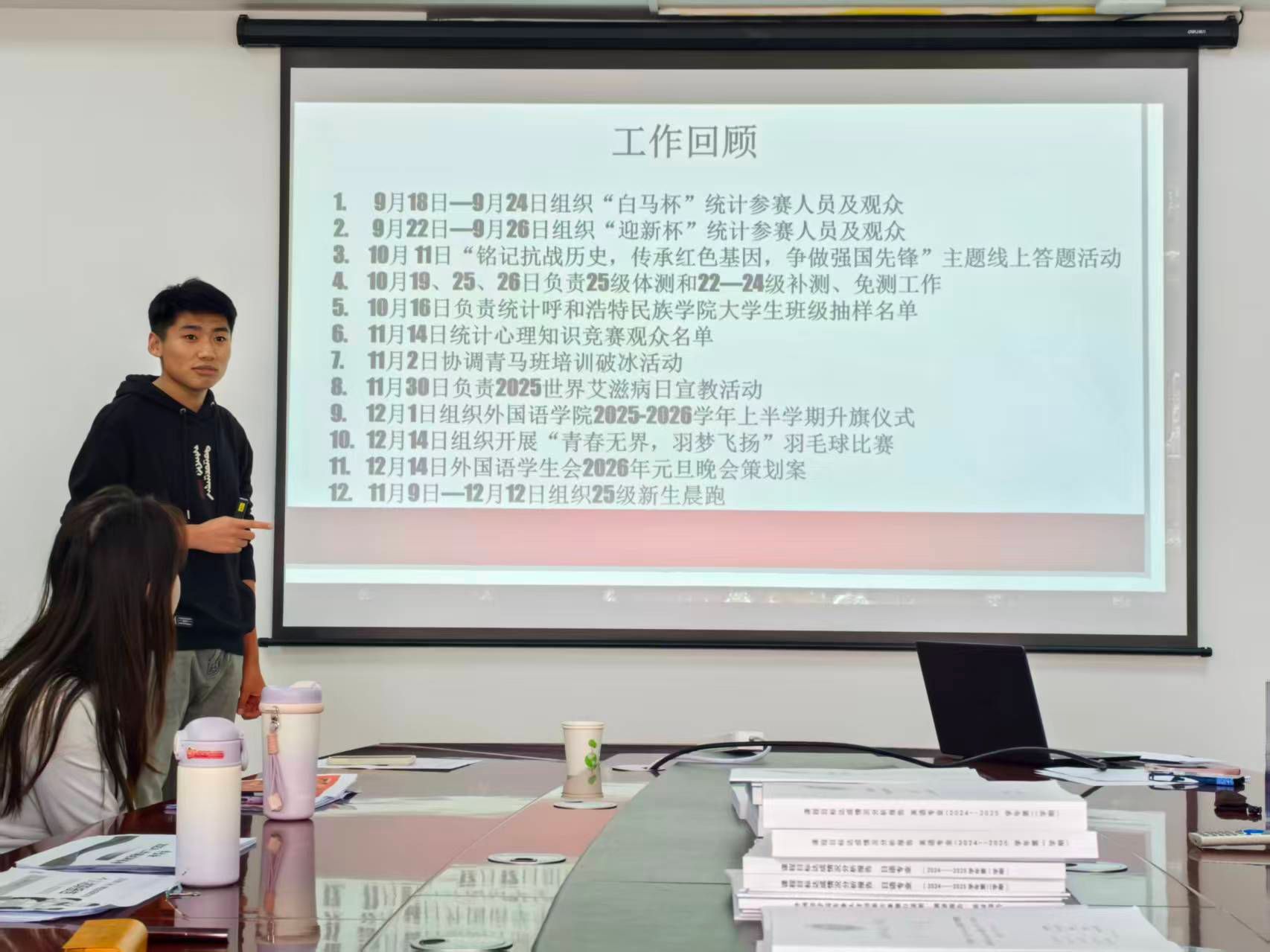 会上,各部门部长和社团社长依次围绕部门职责,从活动组织、团队建设、工作成效、存在不足等方面展开汇报,内容详实、条理清晰。述职过程中,各部长结合具体案例,分享了工作中的经验与感悟。台下部员们认真聆听,不时报以热烈掌声,现场氛围庄重而热烈。