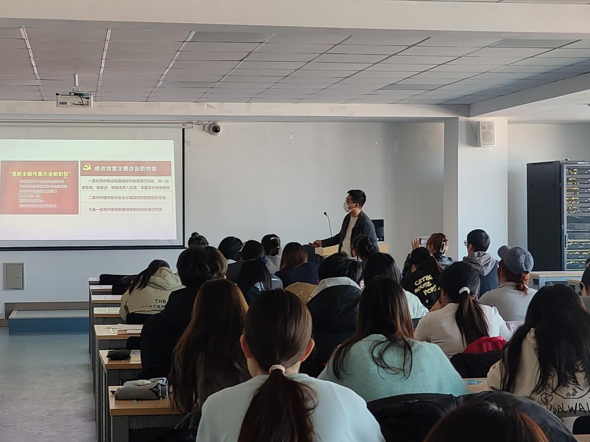 为进一步引导学生深刻认识党章的重要地位和作用,增强学习党章、遵守党章、贯彻党章、维护党章的思想自觉和行动自觉,12月23日中午,外国语学院党总支邀请集宁师范学院成格乐图老师为师生党员、第34期发展对象和第34期积极分子作了题为《认真学习党章,严格遵守党章》的辅导讲座。