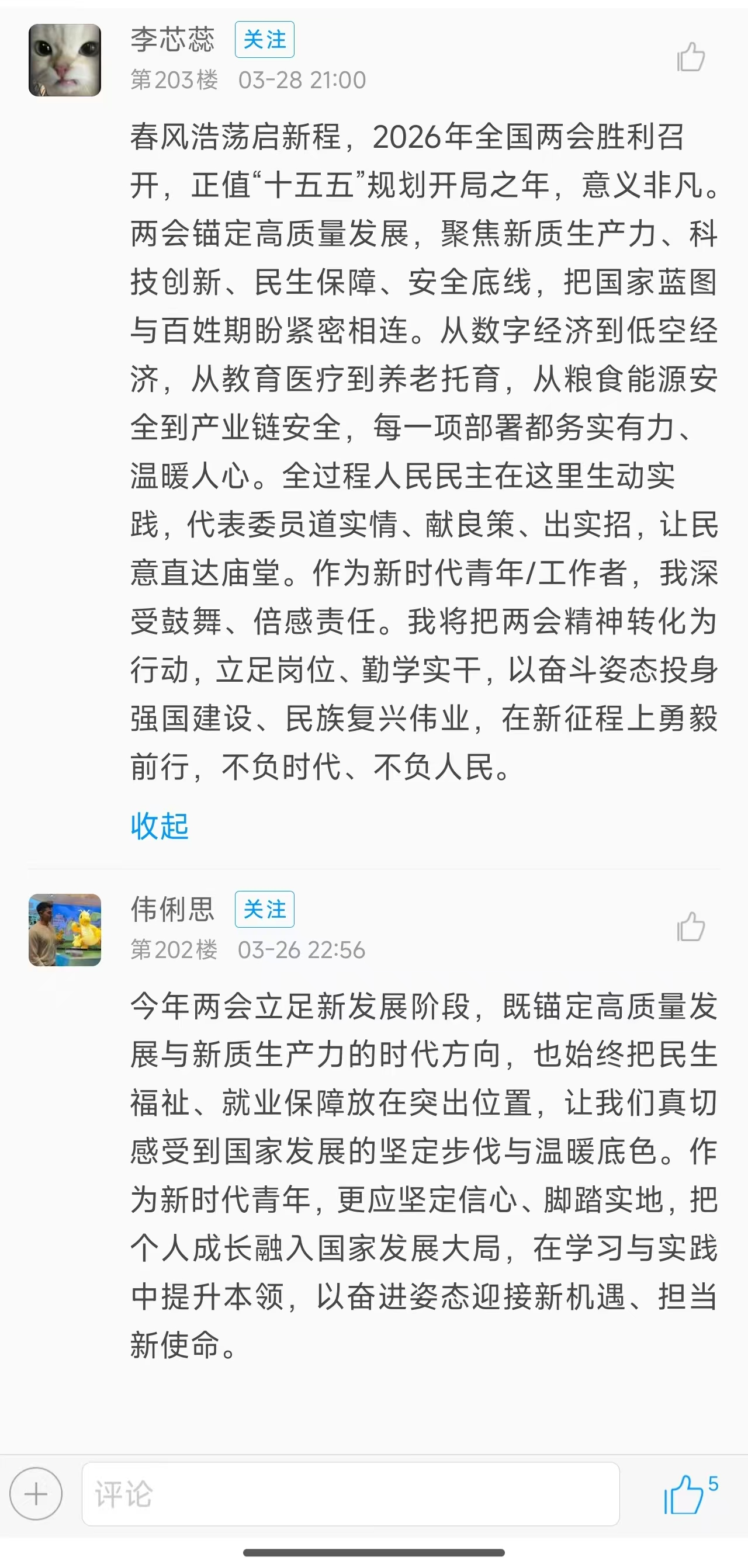 3月16日至29日,呼和浩特民族学院大学生理论学习社依托学习通平台,开展“青春心向党·聚焦2026年两会”线上系列活动。本次活动面向全体在校学生发起参与邀请,大学生理论学习社成员带头参与其中。