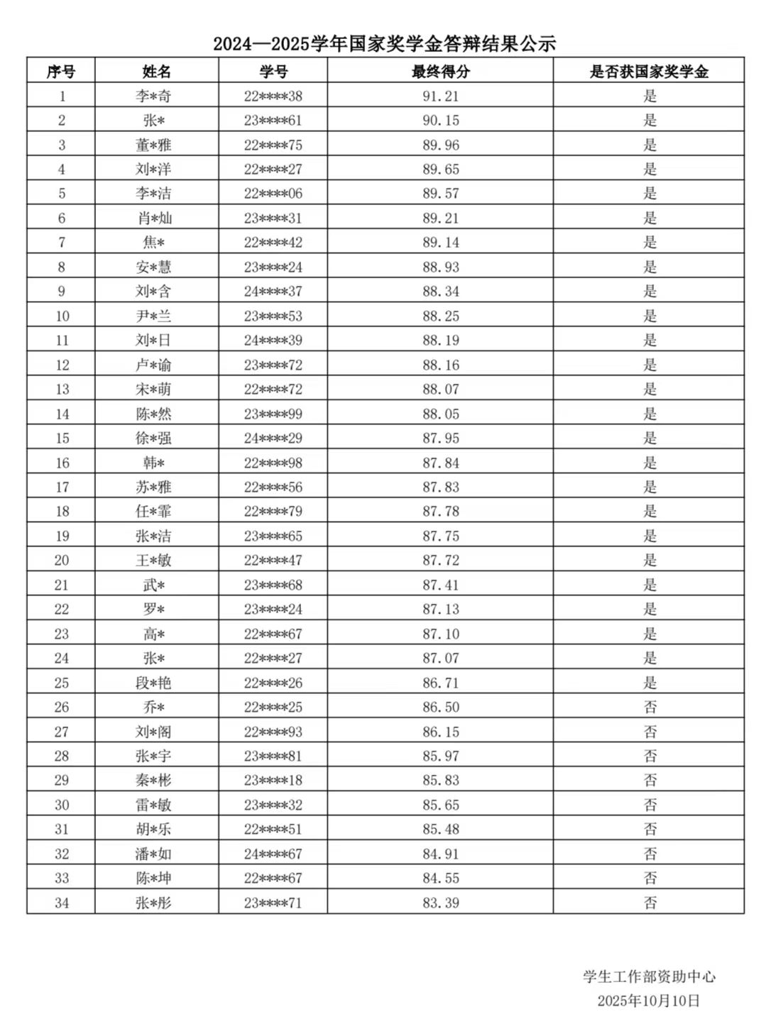 10月10日,我校2025年度国家奖学金答辩会在北图书馆一楼报告厅举行。
