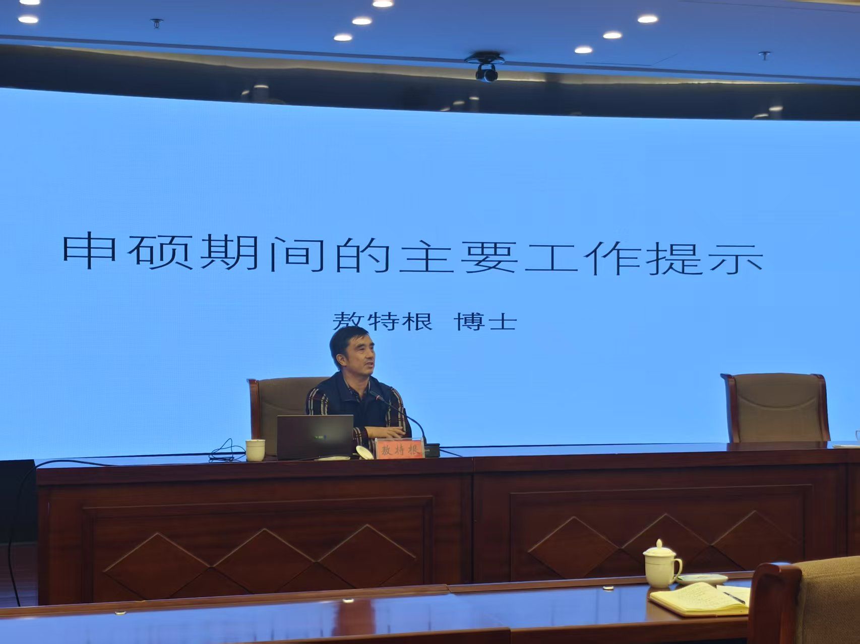 12月23日,我校特邀呼伦贝尔学院党委委员、副院长敖特根,围绕“申硕期间主要工作”作专题讲座。
